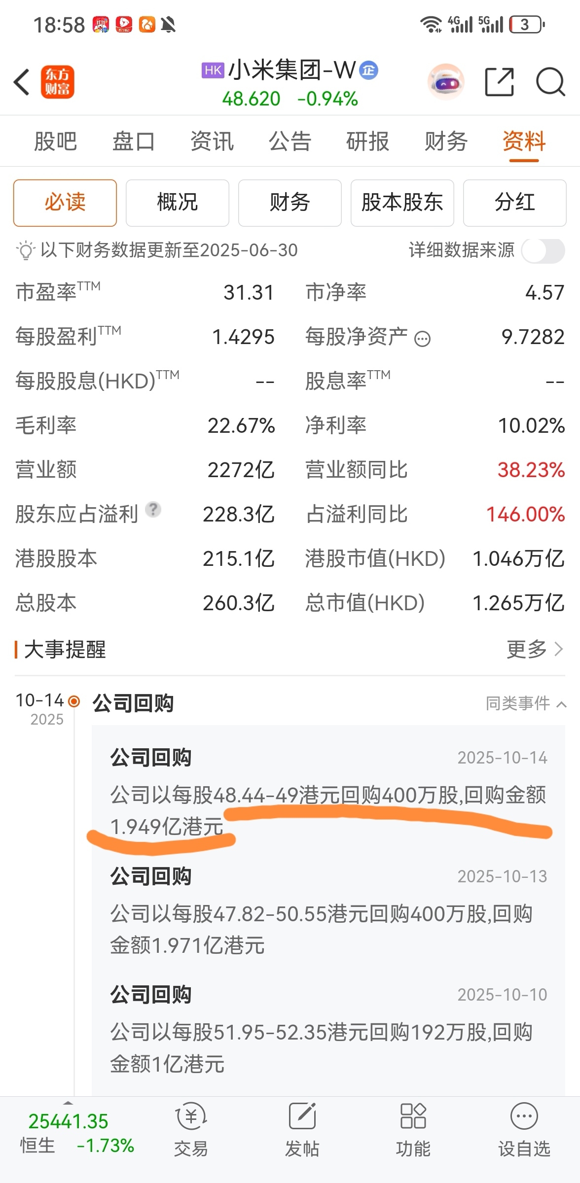 兄弟们,雷布斯今天继续回购了将近2亿港币,小米股价第一目标先看到100港币。