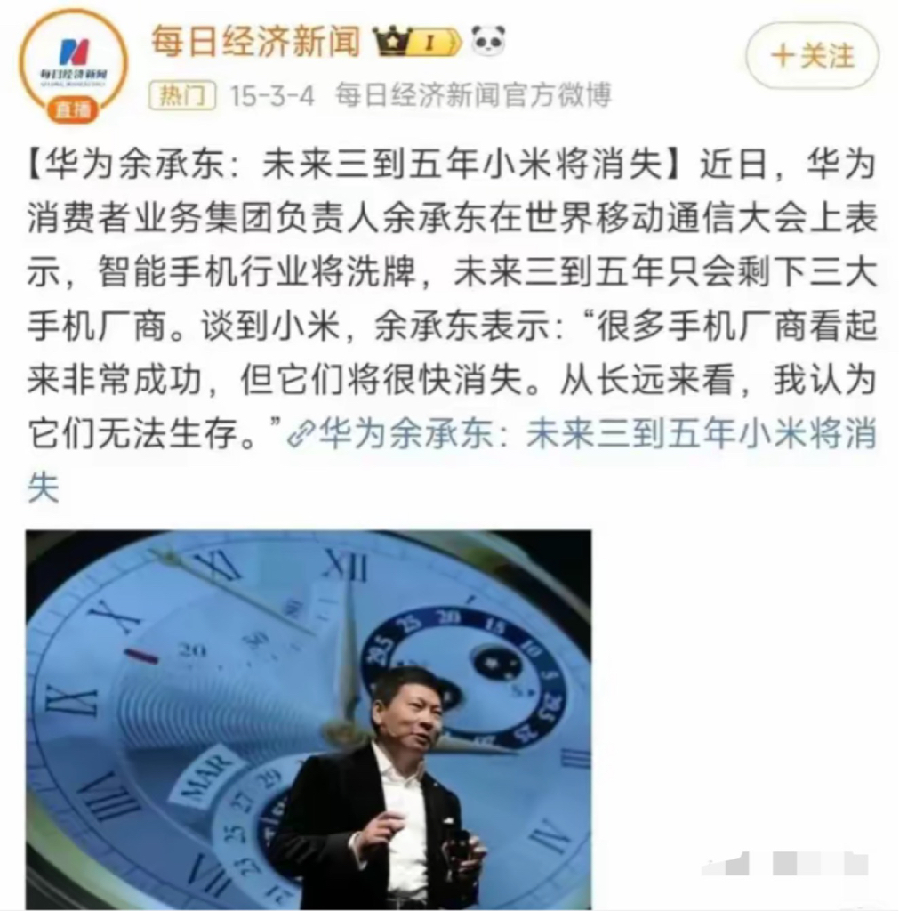 $小米集团-W(HK|01810)$ 他清楚自己公司背后的手段,所以认为可以在三到五年让这家公司消失,但万万没想到,人家起来了!