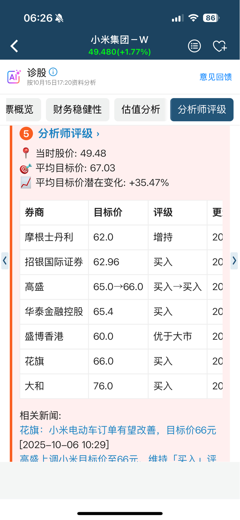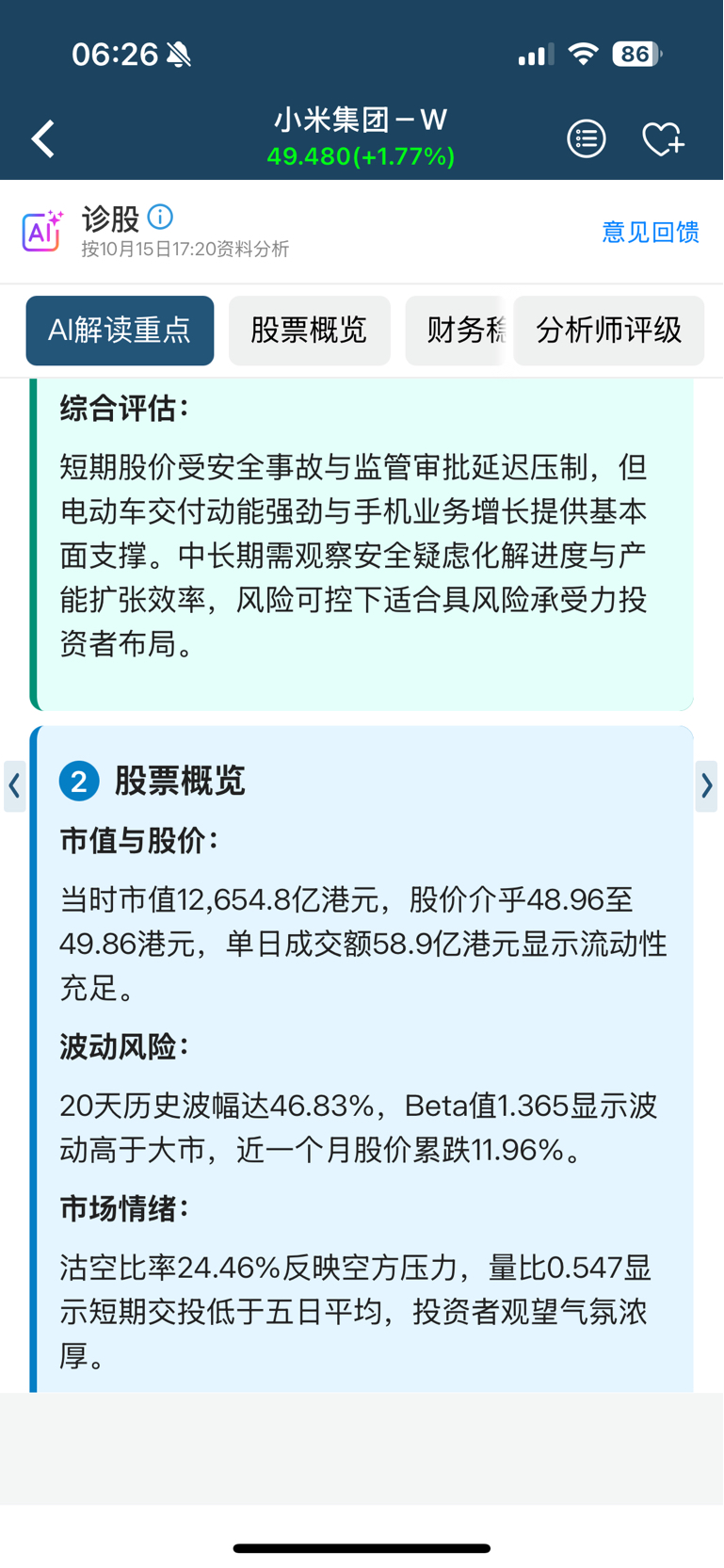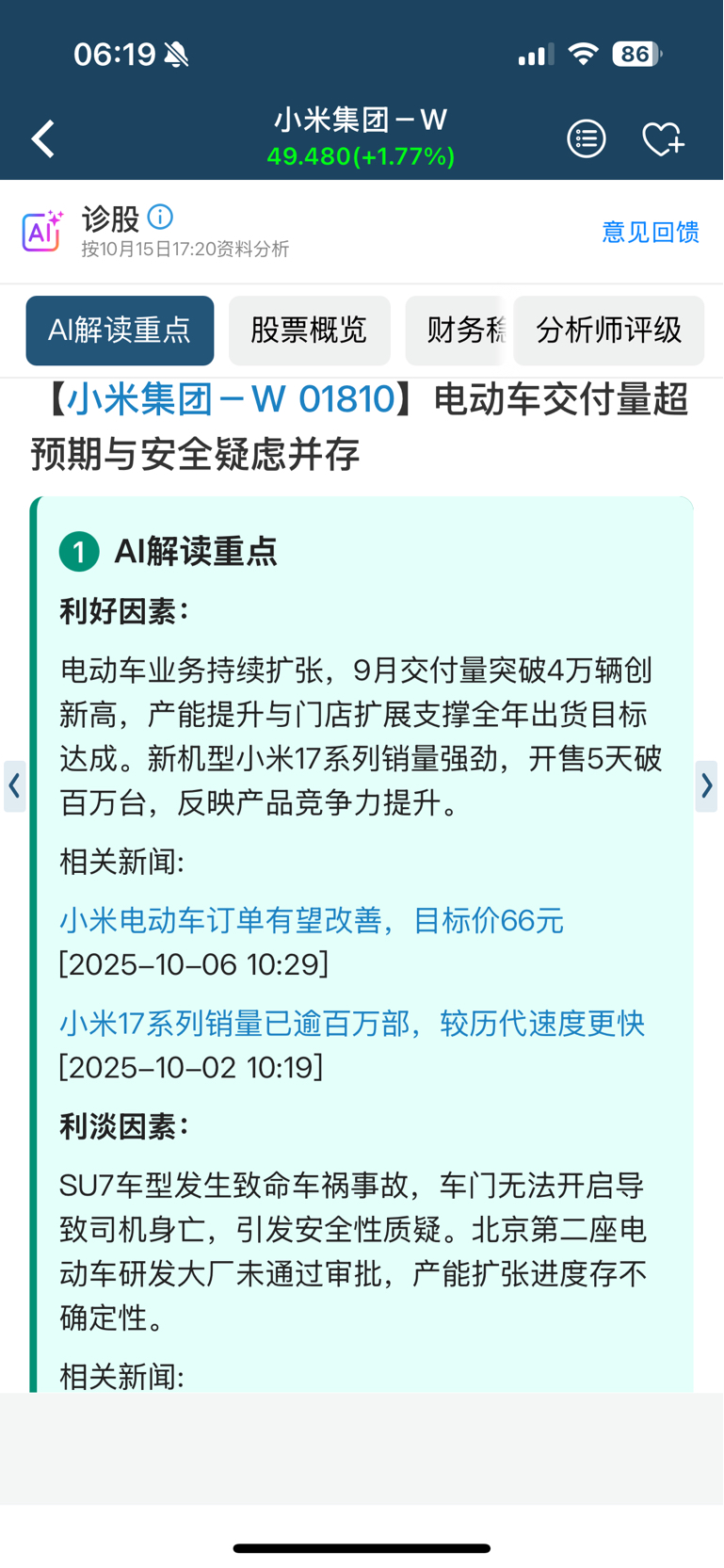 $小米集团-W(HK|01810)$ 小米近期股价存压明显,小米手机销量2周保持国内第一,九月份小米新能源汽车交付超4万辆,2025全年35万辆车能完成。酒驾车事故待警方报告,需进一步等待质任划定。投研股价目标仍有上升空间,情绪释放后,股价有望突破!