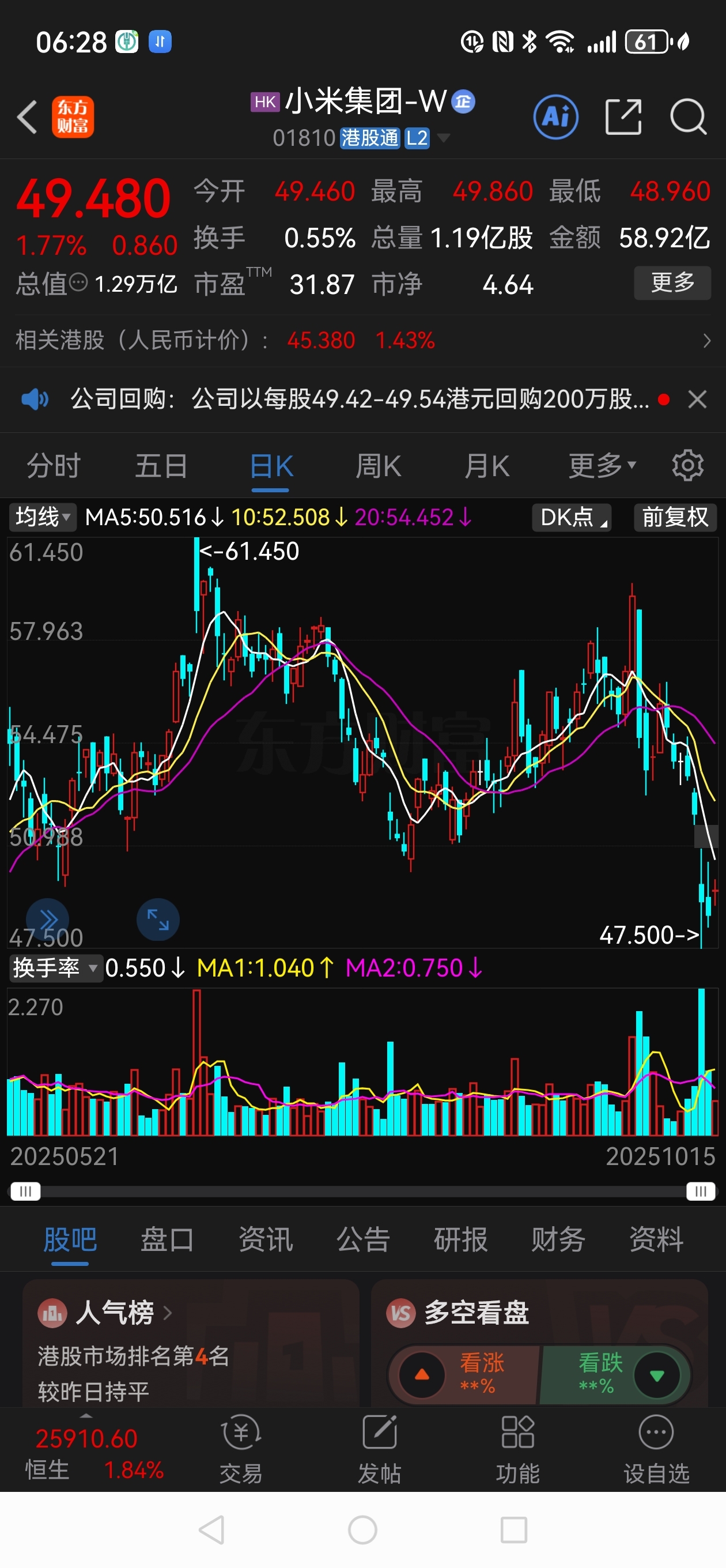小米集团-W的股价就是一路跌跌撞撞从13元上来的。珍惜小米集团50块钱以下的上车
