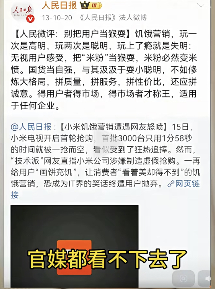 $小米集团-W(HK|01810)$ “把米粉当耍,米粉必然变米愤”---人民日报社评!