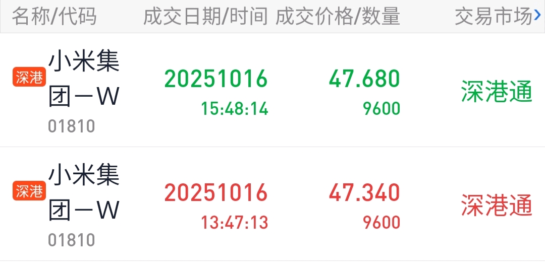 $小米集团-W(HK|01810)$ 请问我做的对吗?今天47.34买了一笔,然后全网都在唱空让卖掉,我尾盘47.68卖掉了。