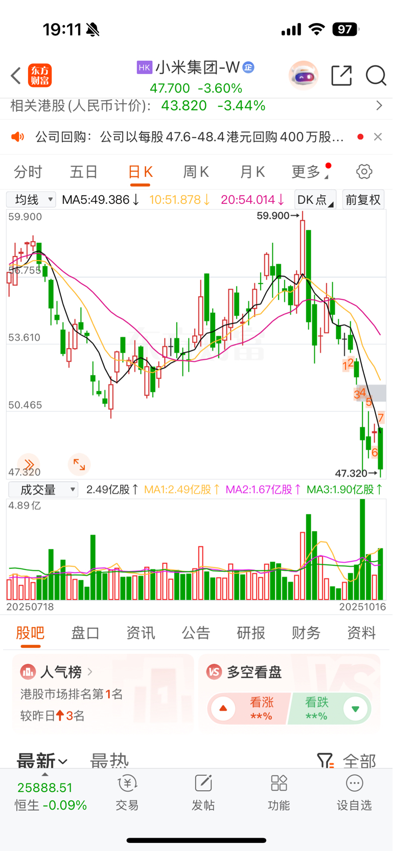 $小米集团-W(HK|01810)$ 当前小米公司股价已经超跌,非一般意义的看空,面对当前复杂的市场信息环境,保持清醒的头脑和独立的判断至关重要。请记住,最终,一家公司的真实价值会通过其持续的产品力、创新能力和经营业绩体现出来,短期的噪音无法改变长期的趋势。