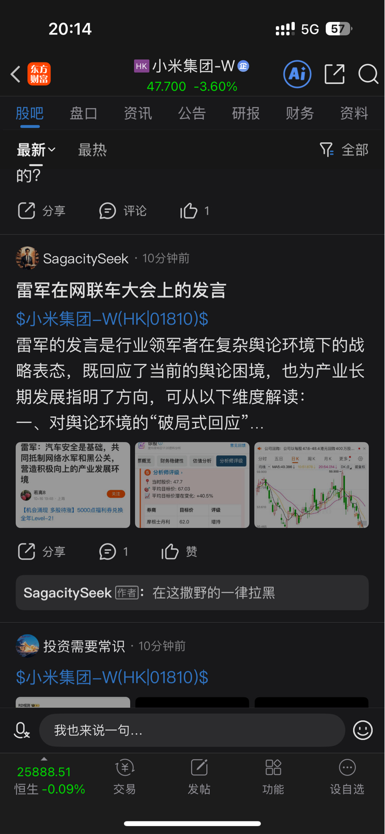 今天看到这个人在小米股吧刷屏,这是重仓小米了吗?