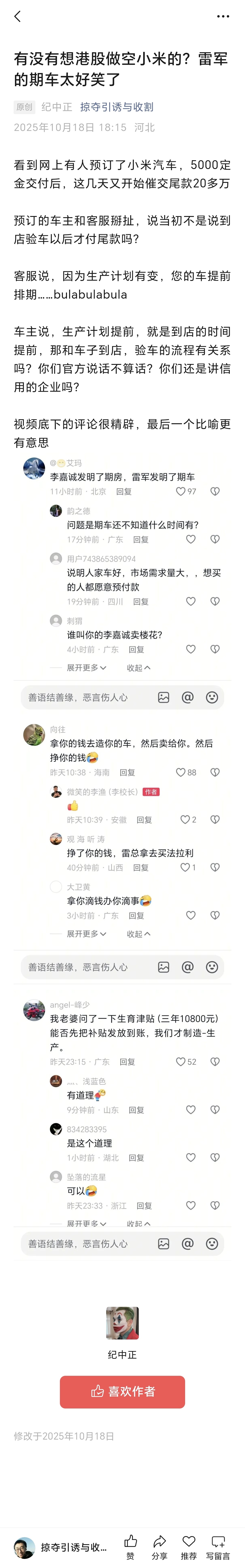 有没有想港股做空小米的?雷军的期车太好笑了