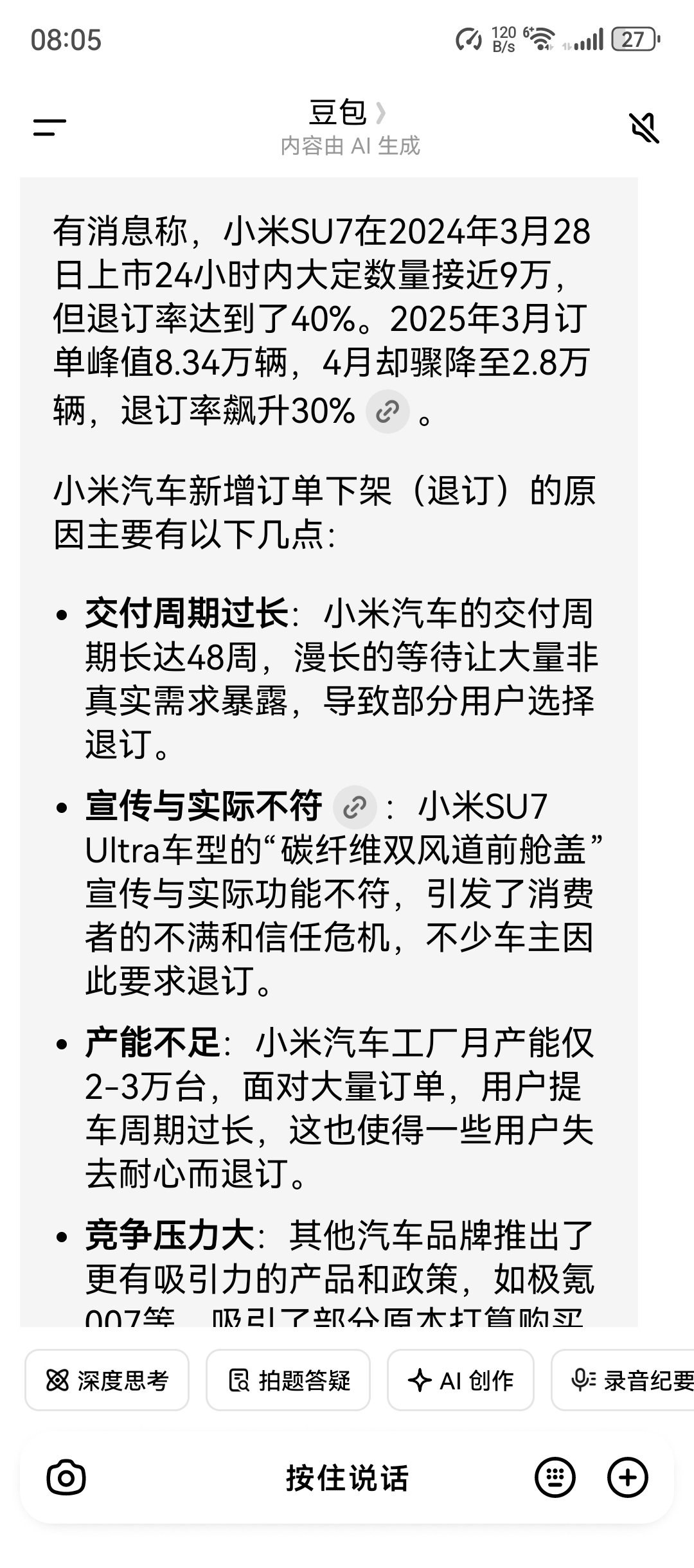 小米现在连新增的订单都不敢发了,看看前几个月的订单退订这些老的订单做完以后没有新