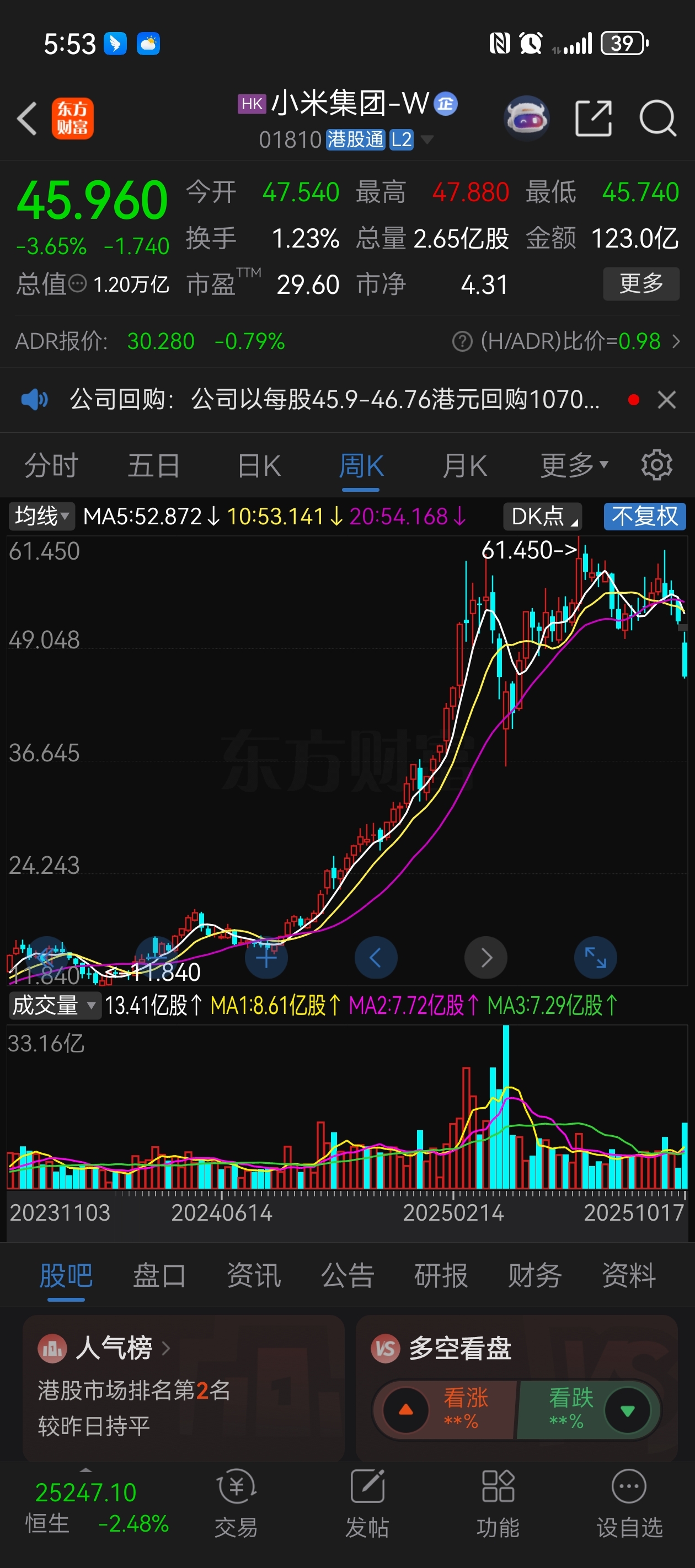 $小米集团-W(HK|01810)$ 纯技术分析,不妙啊