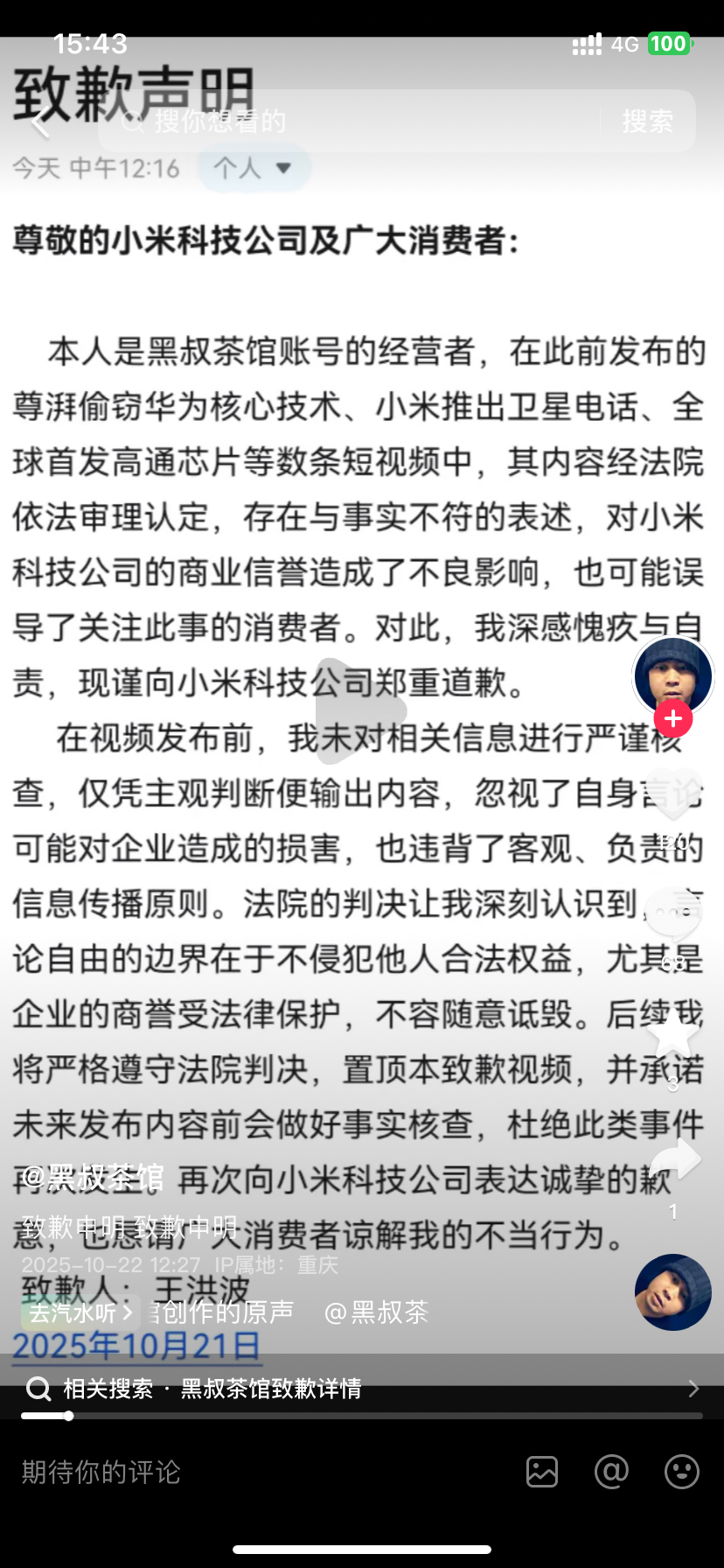 $小米集团-W(HK|01810)$ 粗粮发起的反击,有成效了,十多万粉丝的大v主动发文道歉