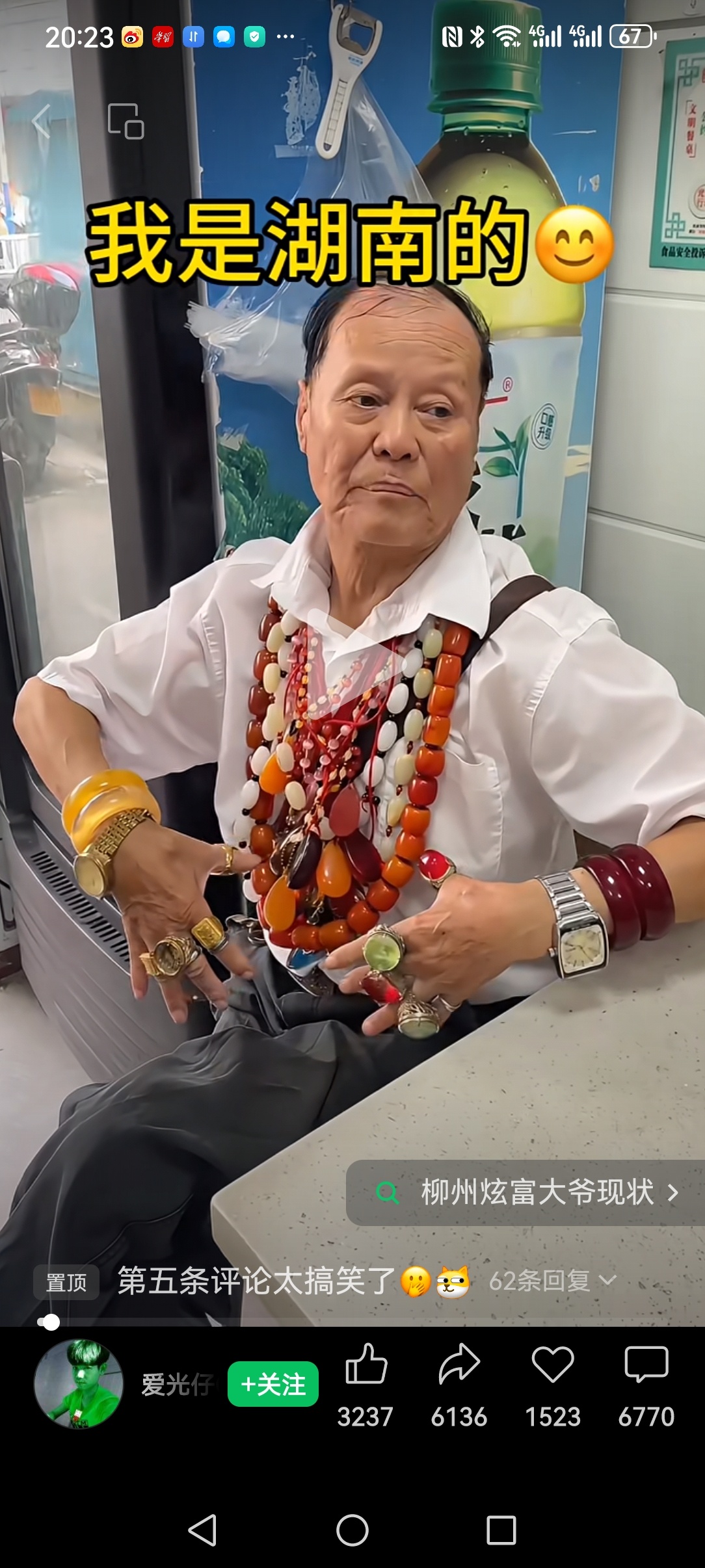 前段时间此人亮眼睛了,它说它是广西首富。它这样披金戴银和亮个V标的就很有钱?其他