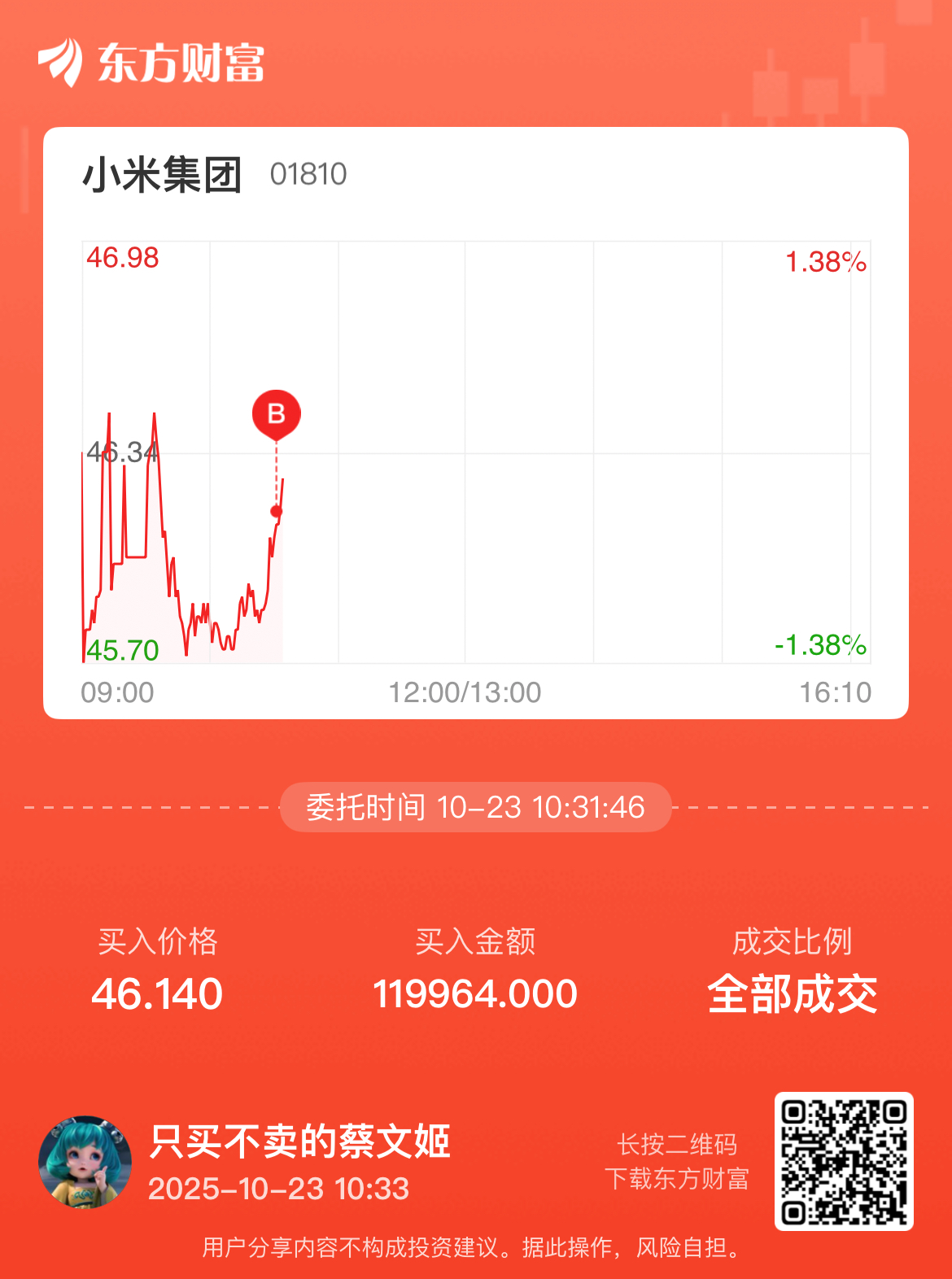 温馨提示: 1.根据《证券法》规定,禁止编造、传播虚假信息或者误导性信息,扰乱证券市场;2.用户在本社区发表的所有资料、言论等仅代表个人观点,与本网站立场无关,不对您构成任何投资建议。用户应基于自己的独立判断,自行决定证券投资并承担相应风险。《东方财富社区管理规定》
