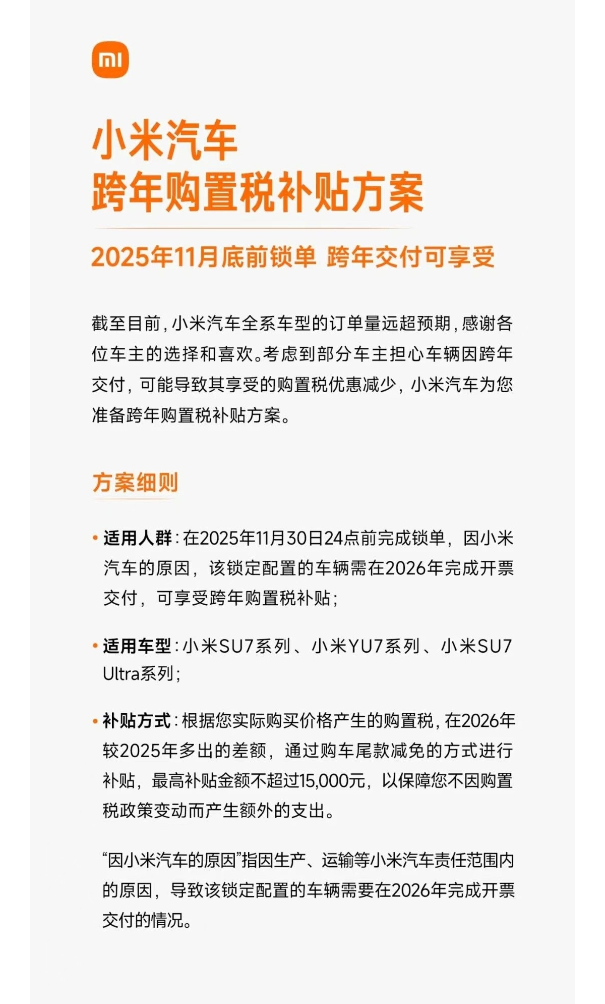 $小米集团-W(HK|01810)$ 利好来了,购置税补贴!