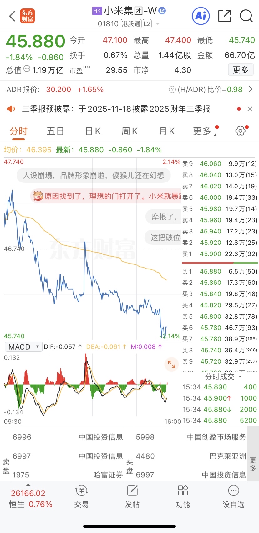 $小米集团-W(HK|01810)$ 麻烦兄弟们帮我叫一下(网红是张螂)帮我在这个帖子下面@一下他,小米45了,叫他回来,谢谢