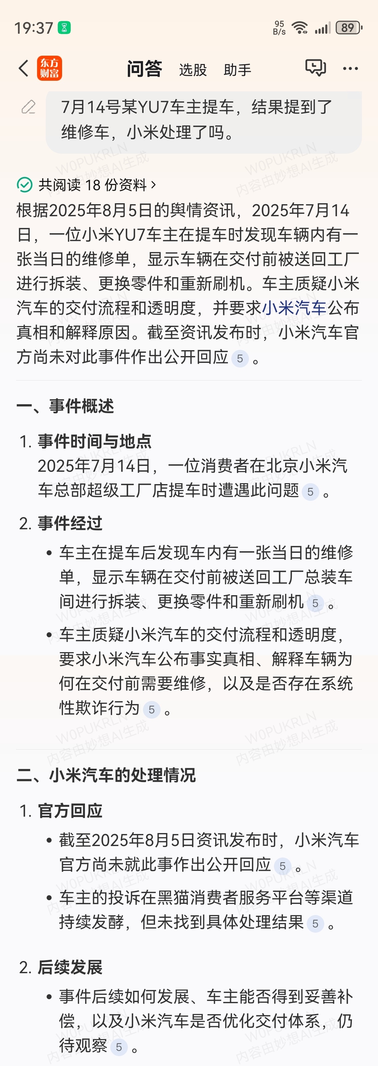 $小米集团-W(HK|01810)$ 7月14号我米的某车主提车,结果在前备箱发现维修单,我米疑似把维修车当新车卖,我米怎么还没有处理?