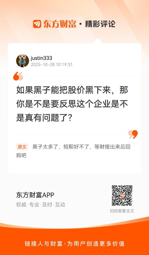 如果黑子能把股价黑下来,那你是不是要反思这个企业是不是真有问题了? 我在《黑子太多了,短期好不了,等财报出来后回购吧》的评论获得了大家的关注。
