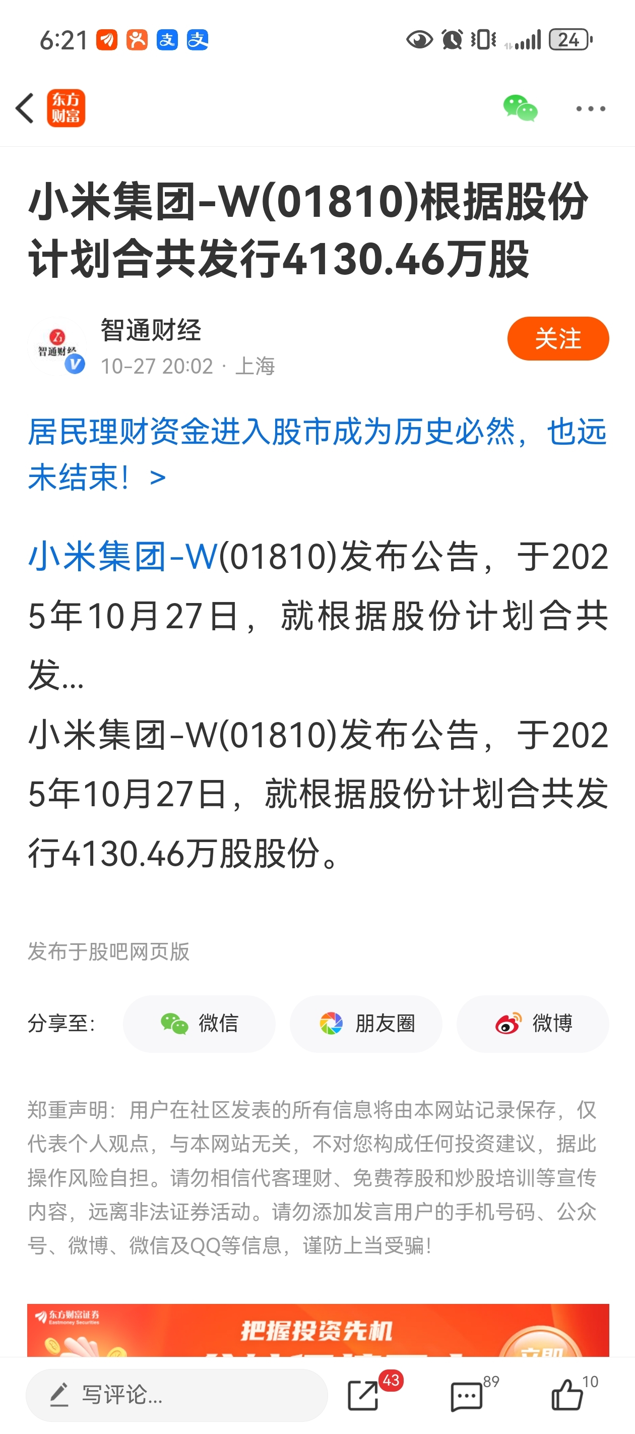$小米集团-W(HK|01810)$ 是有多缺钱,刚高位搞了几百亿,现在又搞21亿