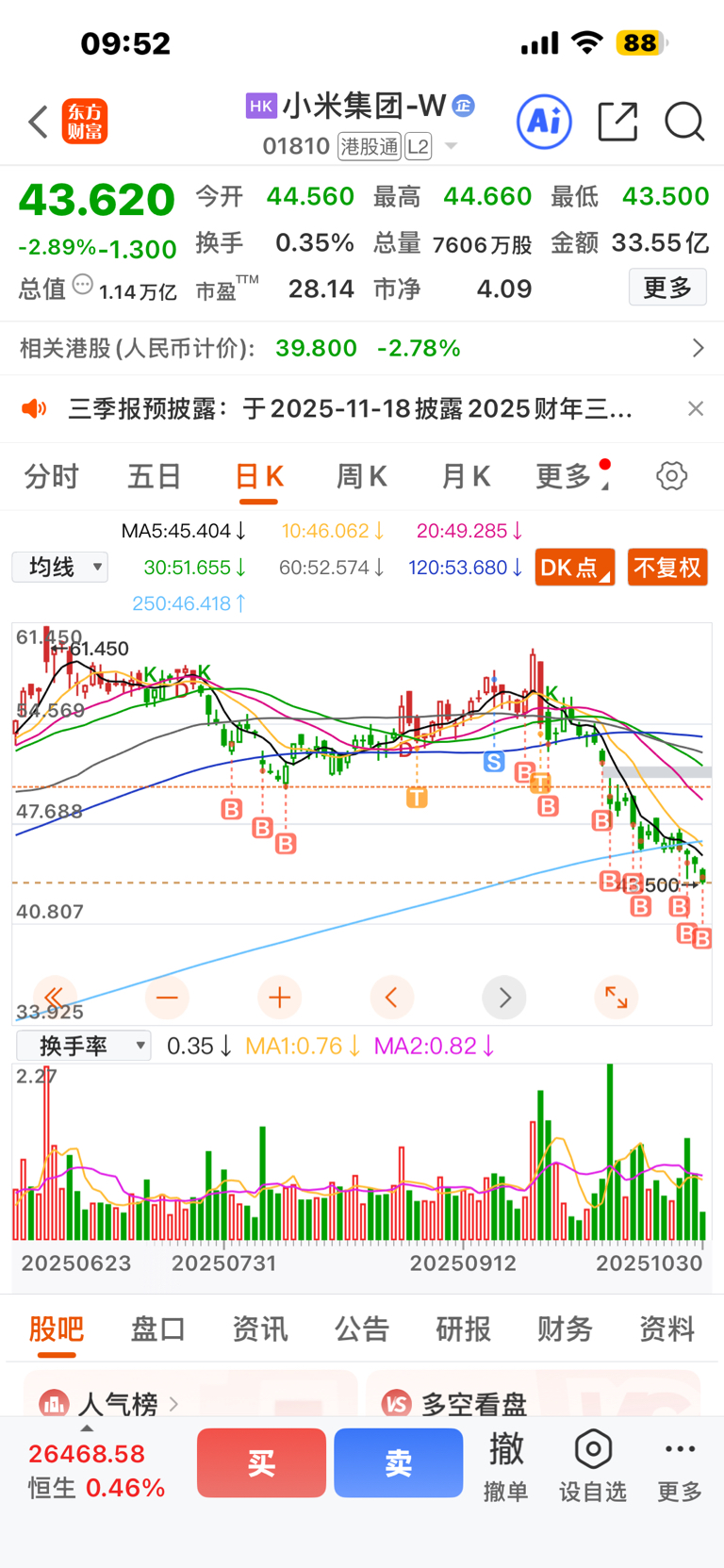 $小米集团-W(HK|01810)$ 别不跌了,每跌一块钱补一次,还有一半仓位没补,做空的大哥给个机会吧#股市怎么看#