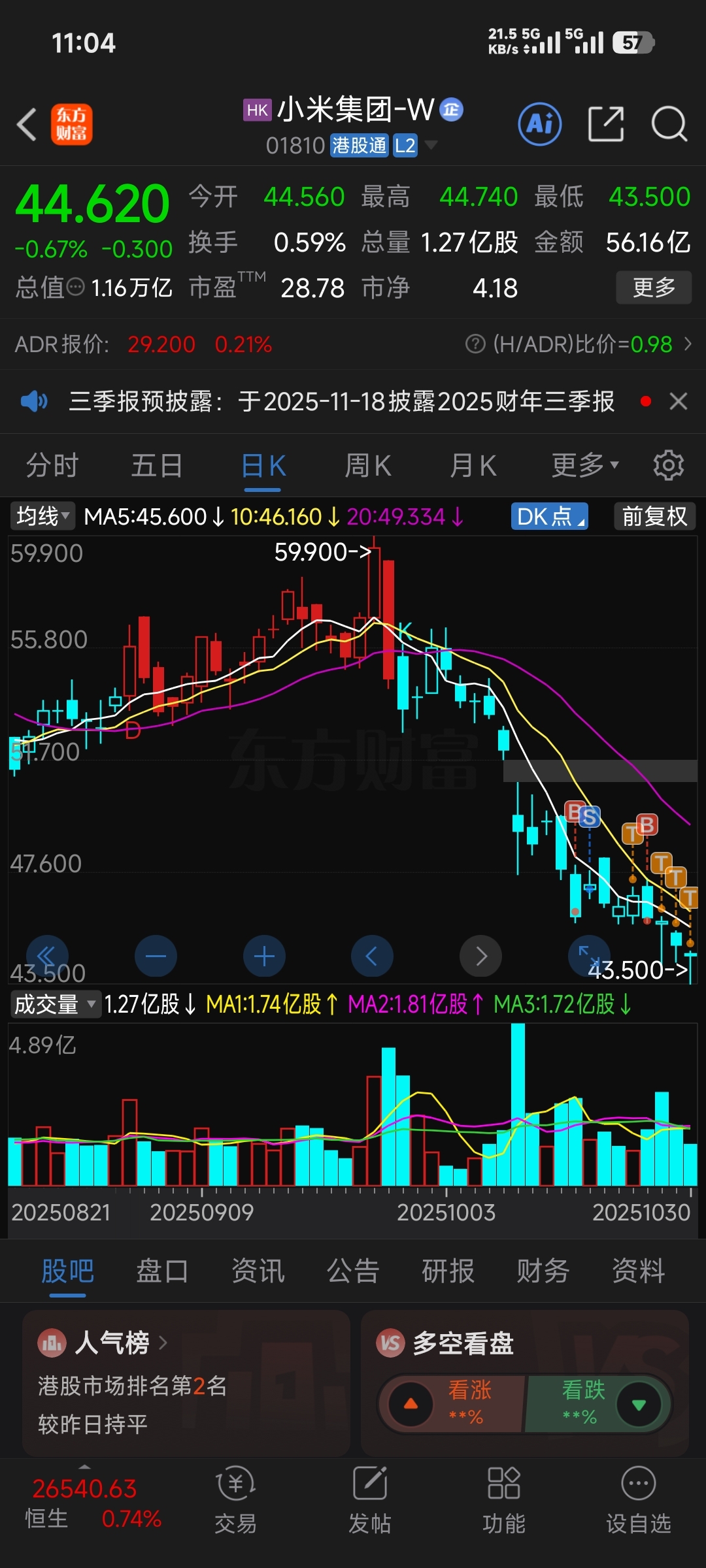 $小米集团-W(HK|01810)$ 每天低买高卖赚个几百零花钱