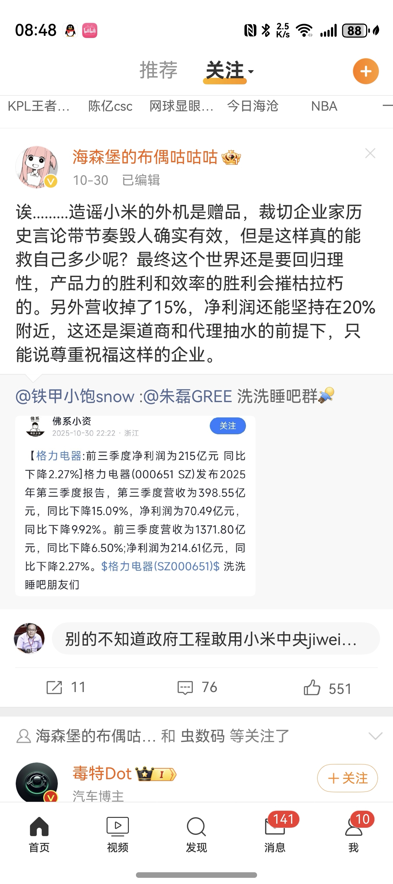 小米的kol就这水平?格力跌了能进你口袋吗?