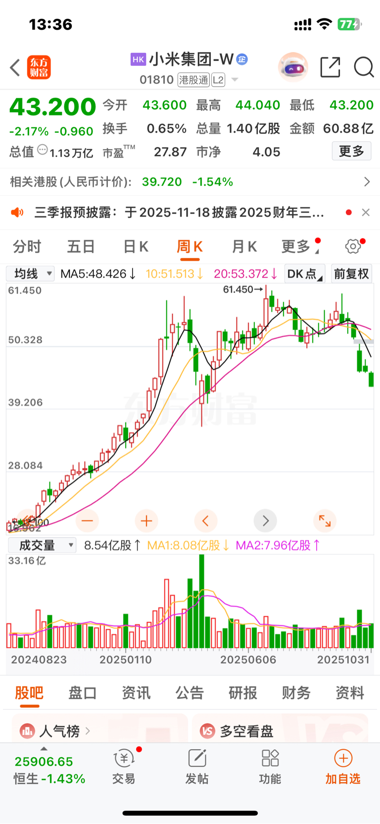 $小米集团-W(HK|01810)$ 惨不忍睹