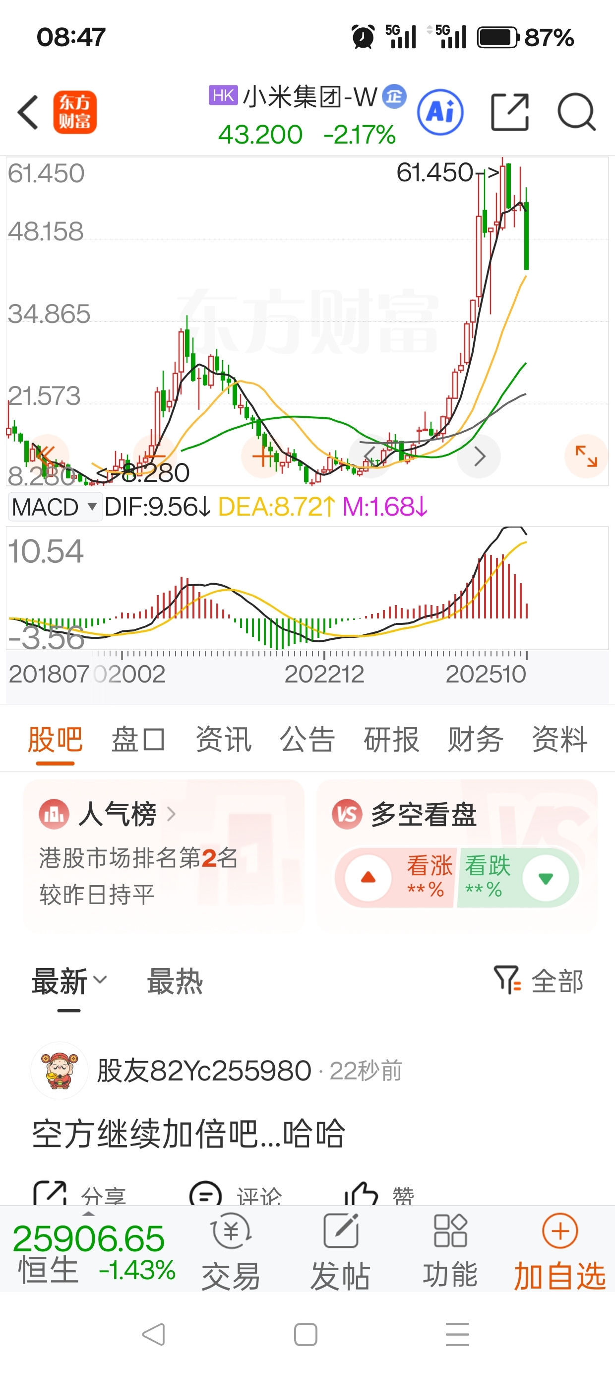 $小米集团-W(HK|01810)$ 看看月底线,反弹会有的,然后再破支撑