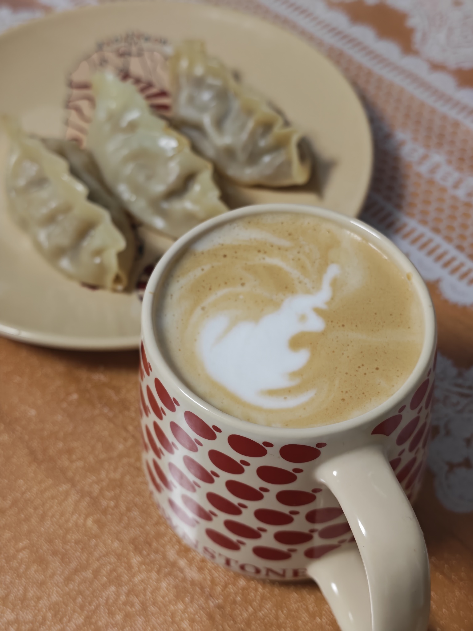 哦哈哟~@葵宝不吃面@墨渣特看看我这取得了微小进步的拉花技术,今天又是火火火火的