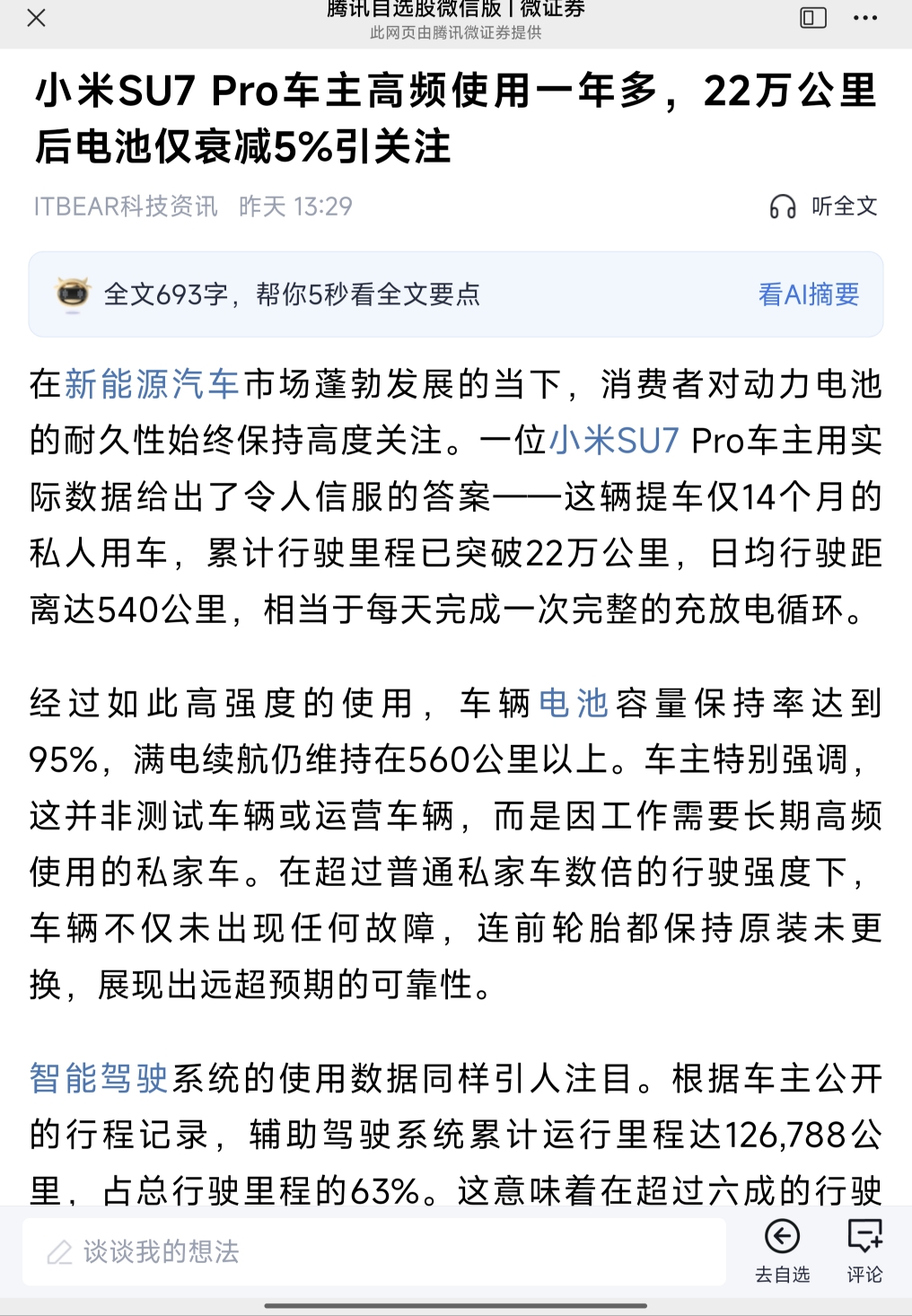 $小米集团-W(HK|01810)$ 小米SU7 Pro车主高频使用一年多22万公里后,电池几无衰减