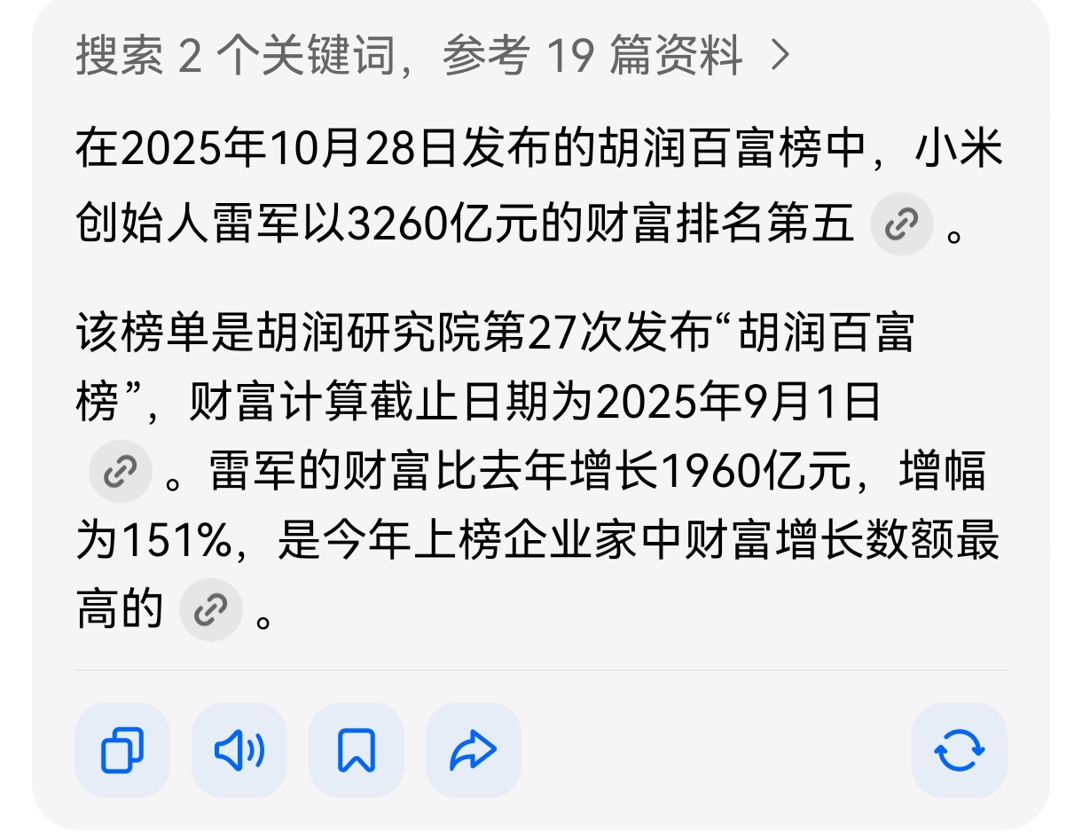 雷军晋升胡润富豪排行榜第五,年度财富提高1,960亿,小米集团共获取了多少利润?