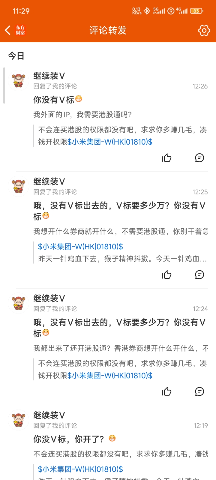 $小米集团-W(HK|01810)$一条拿5毛的,除了这样急还能怎么急。打开V2你又不乐意了,你又要V4,V5了。