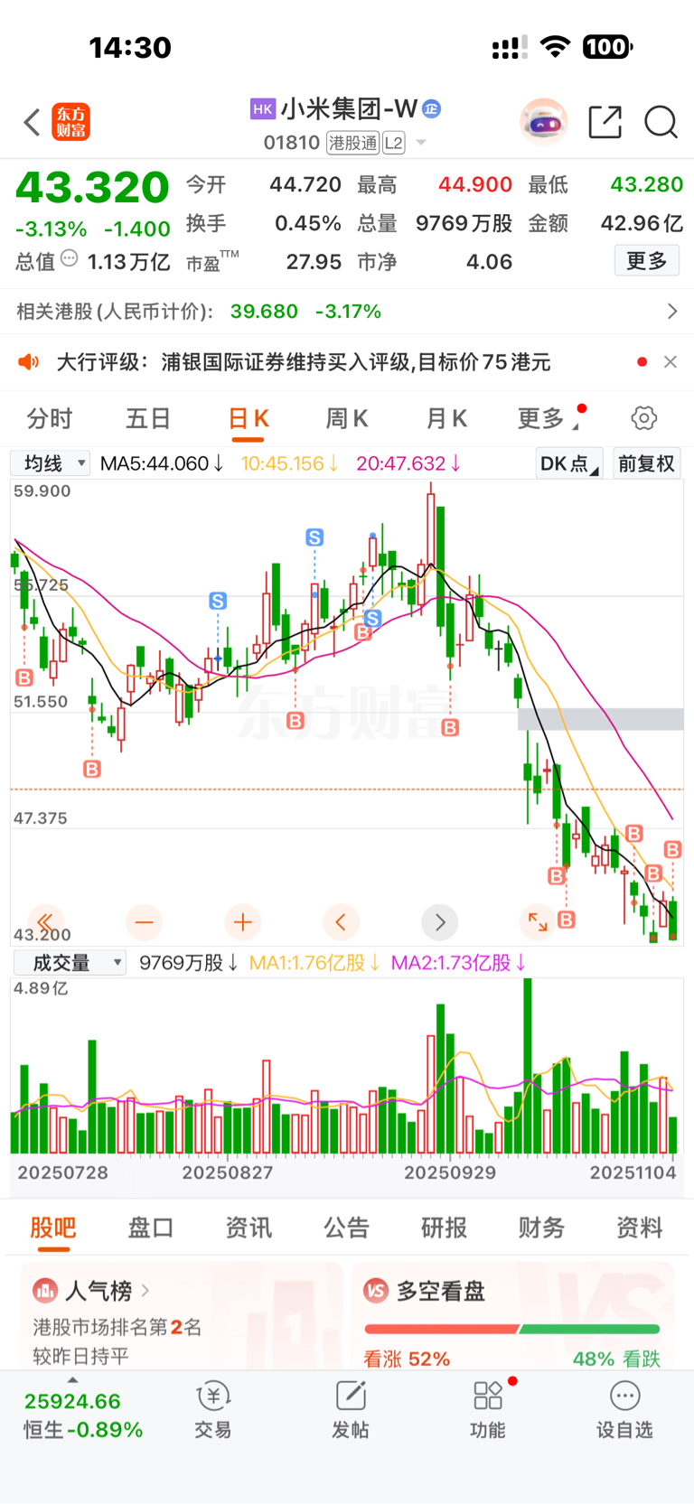 $小米集团-W(HK|01810)$ 长期看好!逢跌坚定买入!#炒股日记#