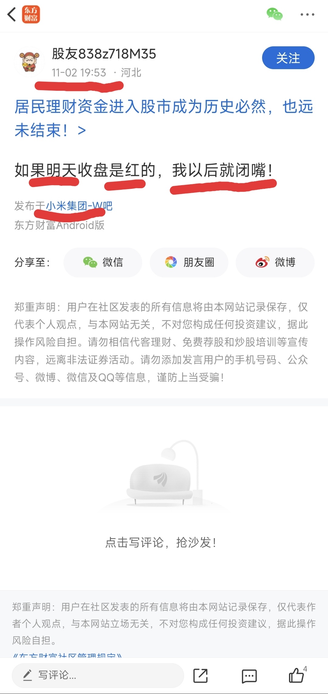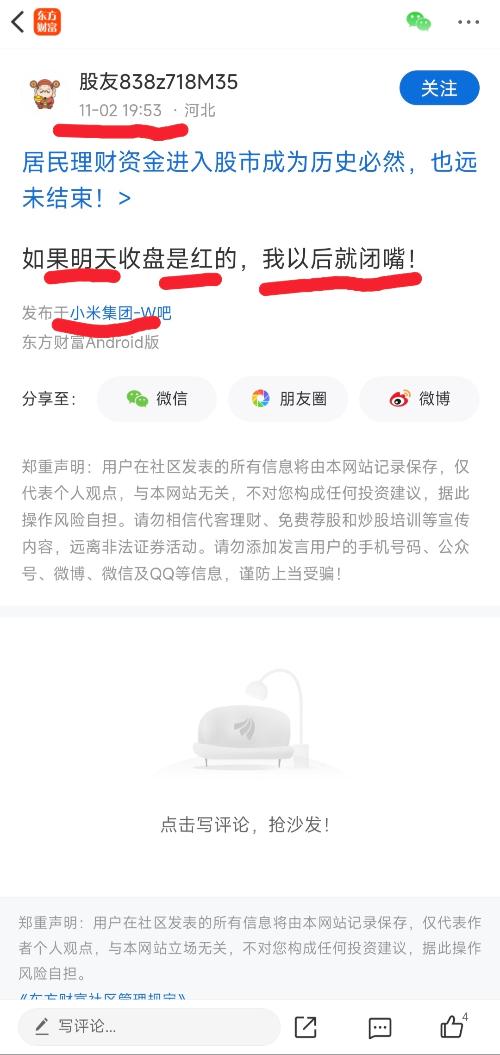 温馨提示: 1.根据《证券法》规定,禁止编造、传播虚假信息或者误导性信息,扰乱证券市场;2.用户在本社区发表的所有资料、言论等仅代表个人观点,与本网站立场无关,不对您构成任何投资建议。用户应基于自己的独立判断,自行决定证券投资并承担相应风险。《东方财富社区管理规定》