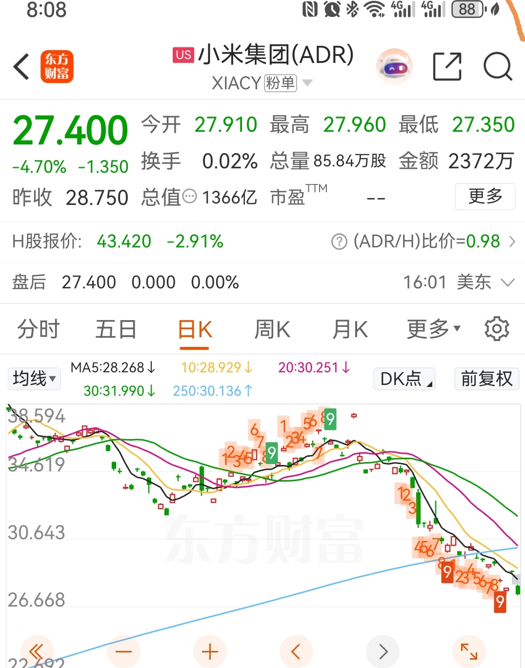 小米美股暴跌创新低,第一财经:小米订单虚假。