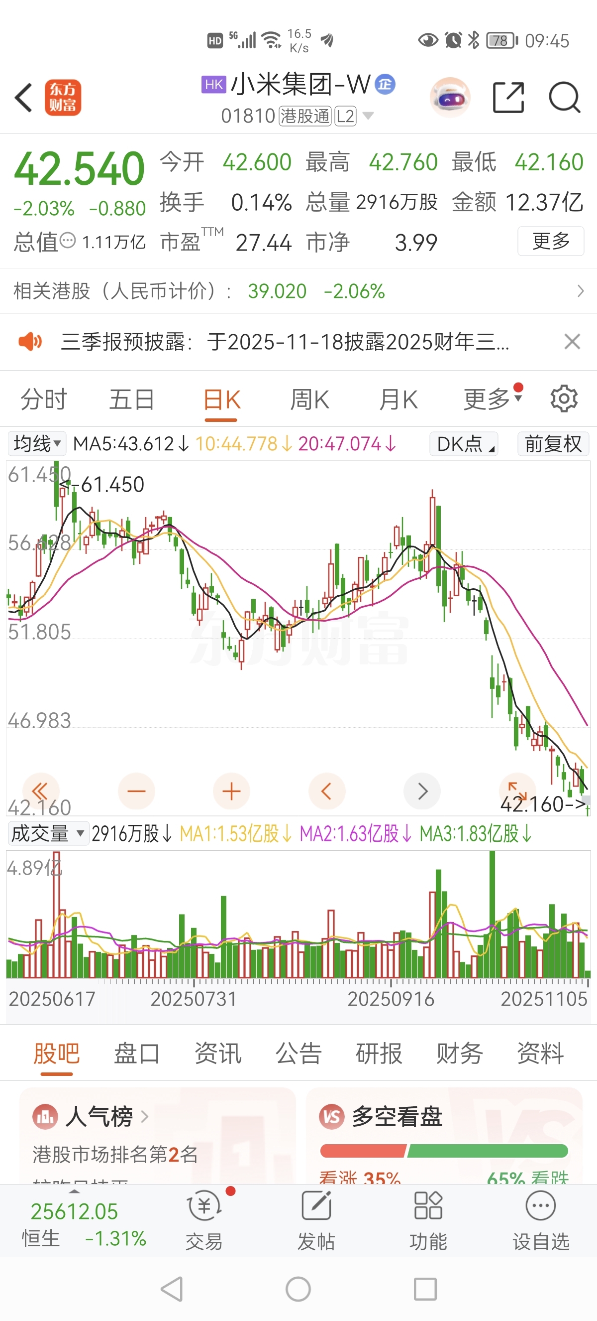 $小米集团-W(HK|01810)$ 有没有一种食之无肉 弃之有味的感觉。不要挣扎了………