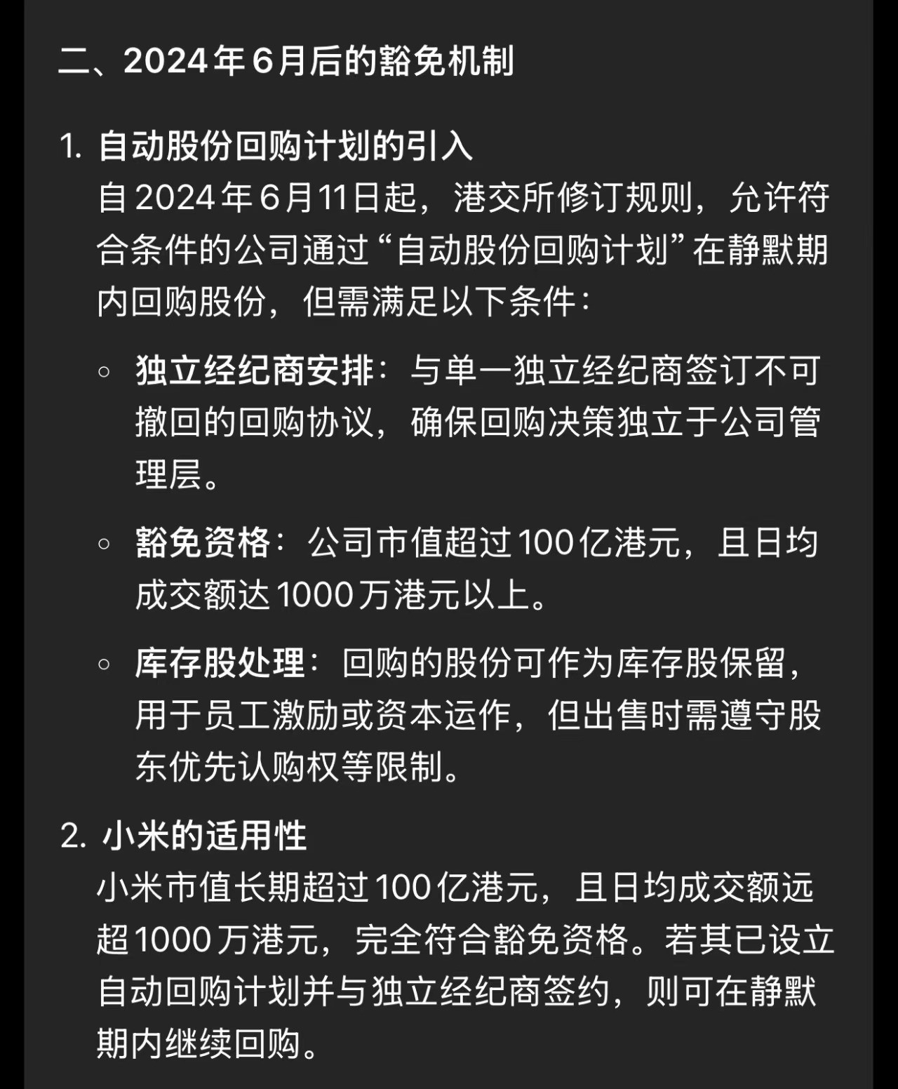 我早就说过静默期是可以回购的!就是雷军不回购了!这是2024年的新规!
