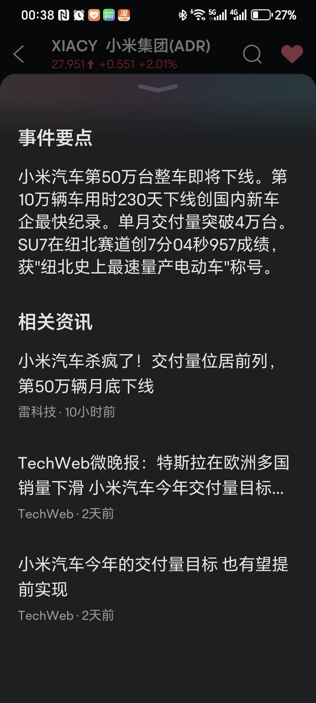 $小米集团-W(HK|01810)$ 第50万辆整车即将下线,这是真的吗?