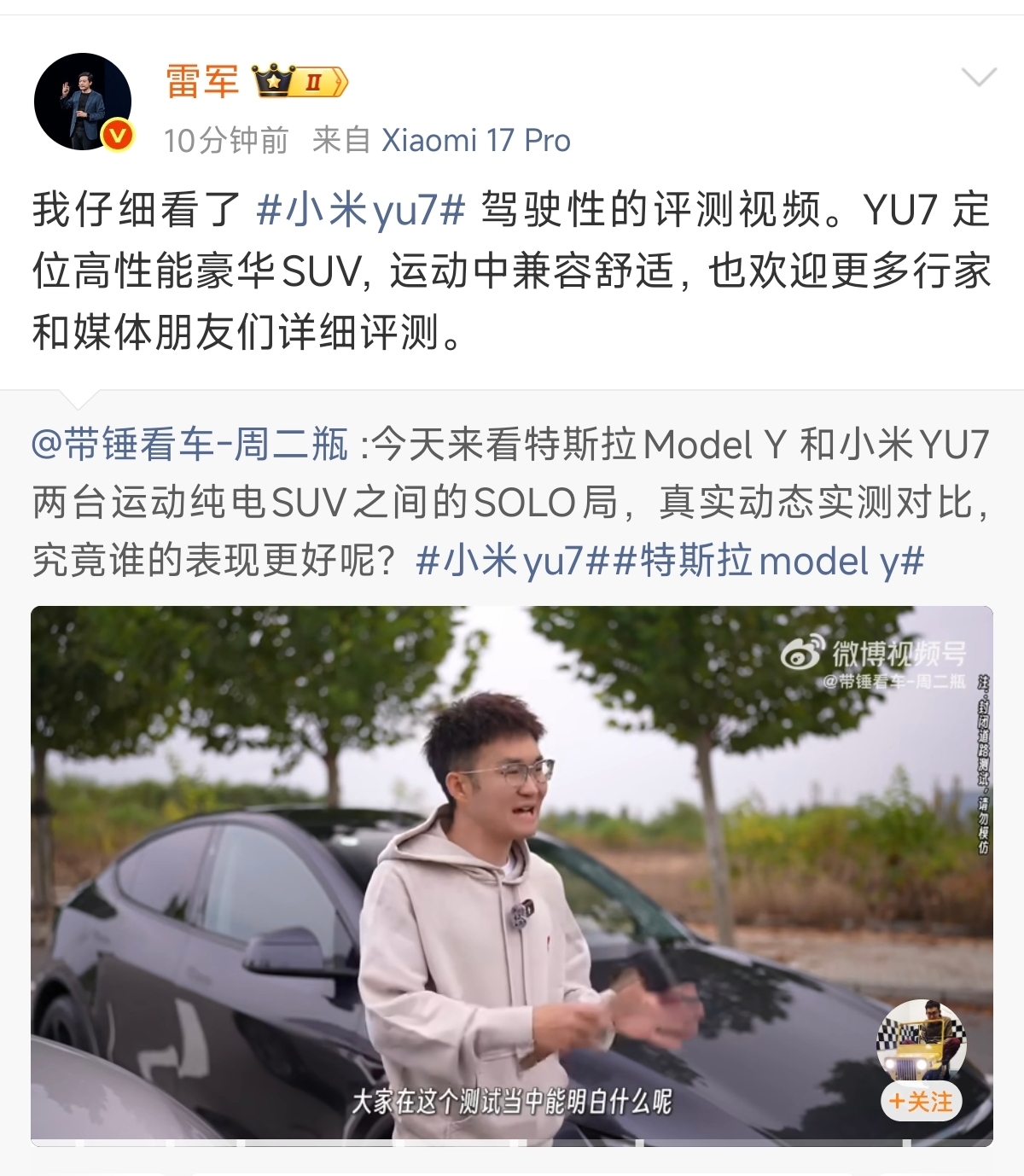 小米yu7驾驶性的评测视频,大家可以去看看!