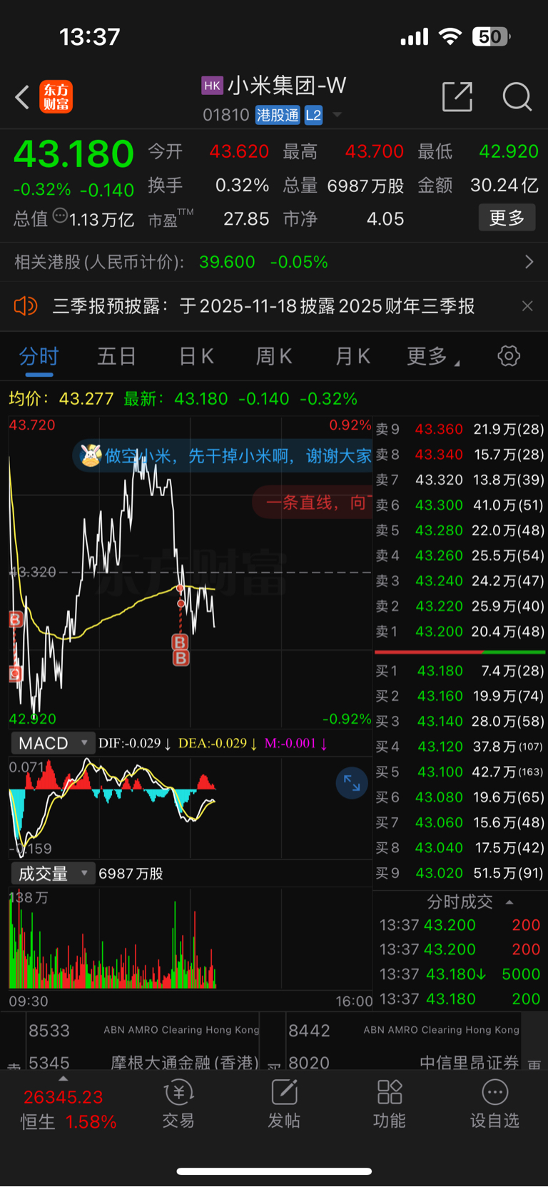 $小米集团-W(HK|01810)$ 天天外面打野养你,可让人失望