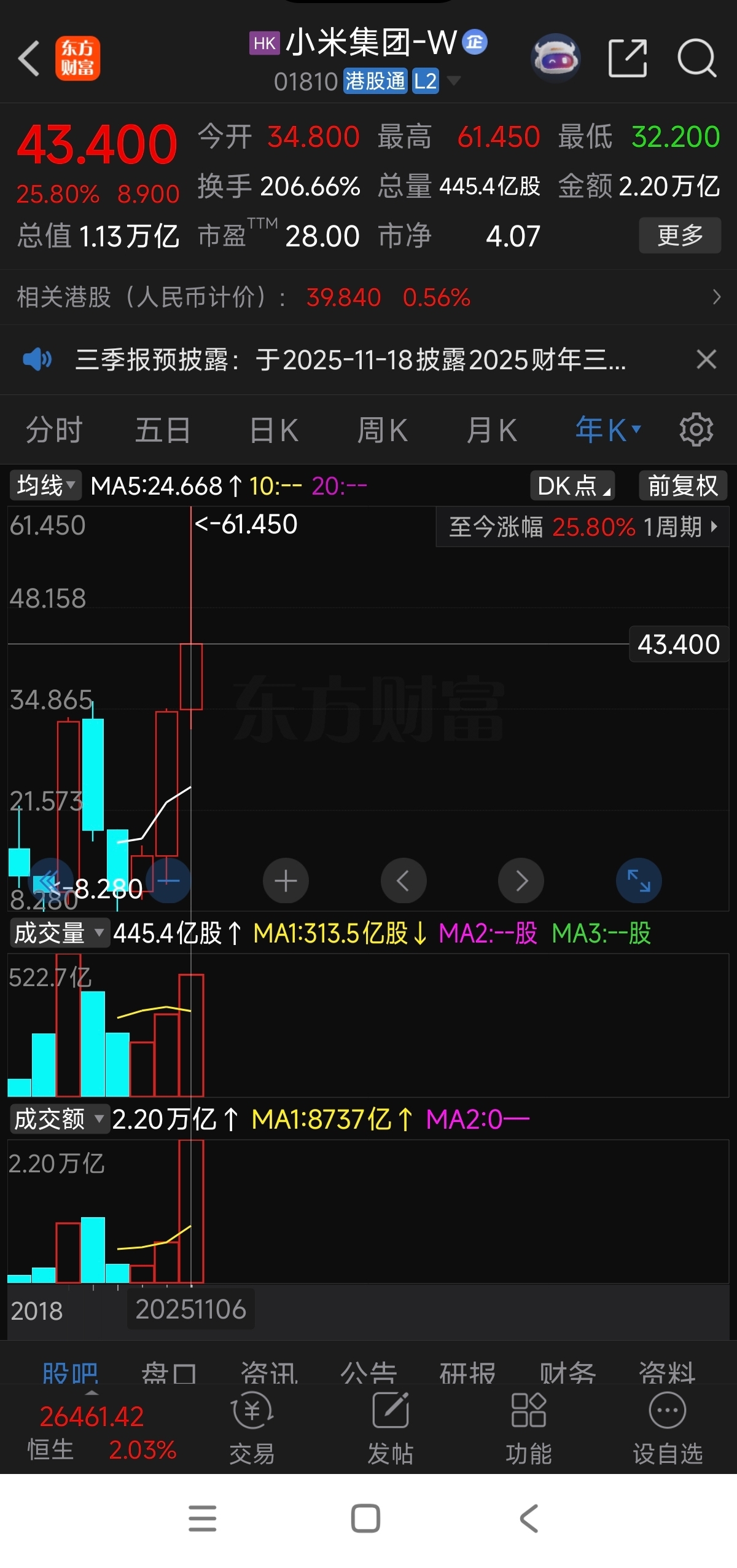 $小米集团-W(HK|01810)$ 25年还涨了25%