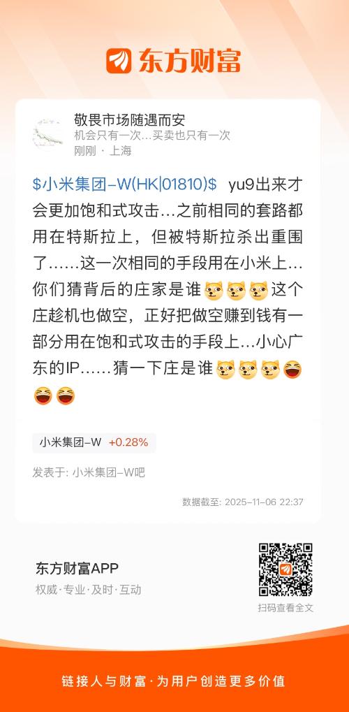 $小米集团-W(HK|01810)$ yu9出来才会更加饱和式攻击…之前相同的套路都用在特斯拉上,但被特斯拉杀出重围了……这一次相同的手段用在小米上…你们猜背后的庄家是谁