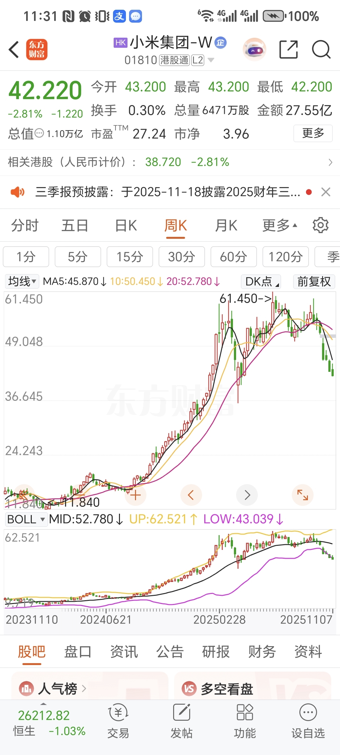 从60多下来,快20元下跌了。可能已经没有下跌空间了。还有余钱的雷粉,该你们做贡