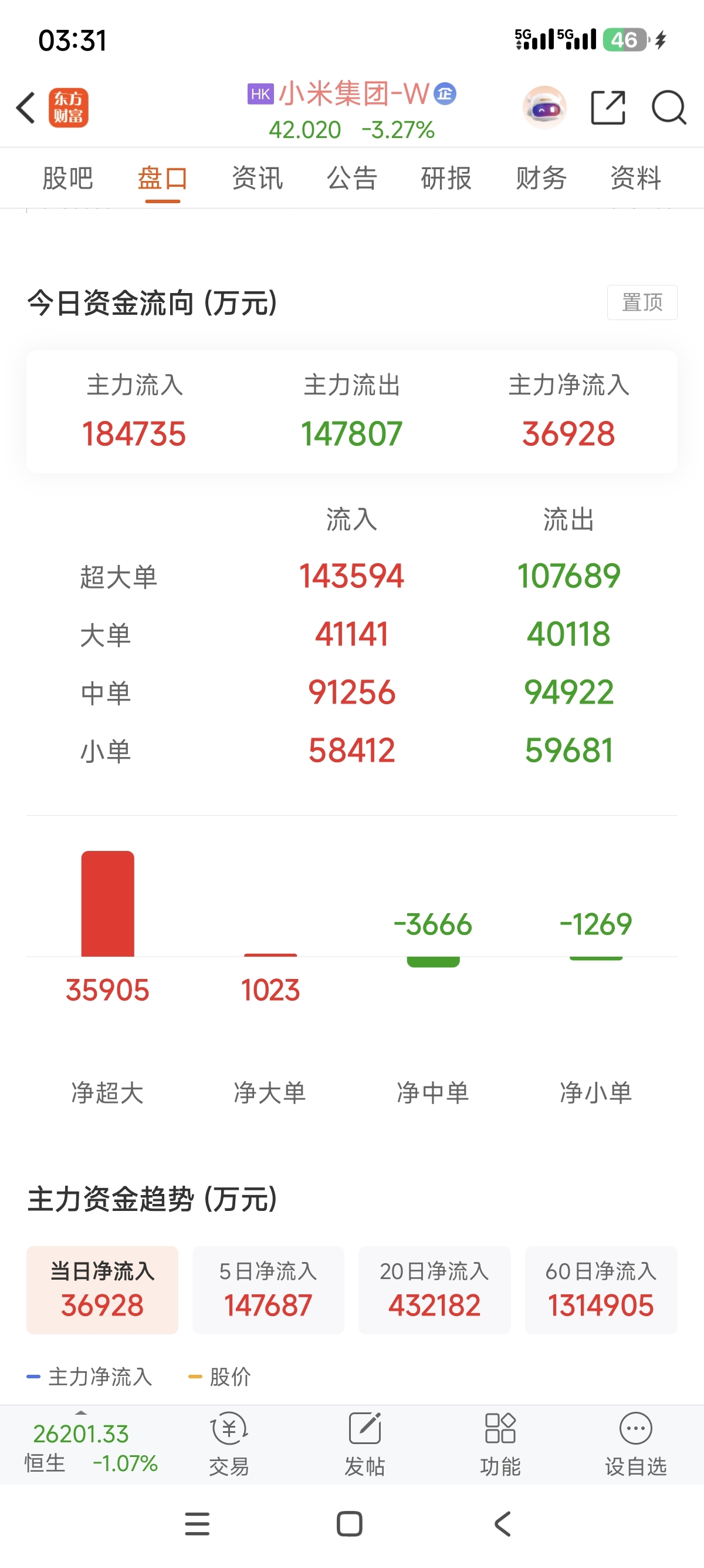 $小米集团-W(HK|01810)$ 小米长期都是主力净流入为正的,为什么跌的这么狠。