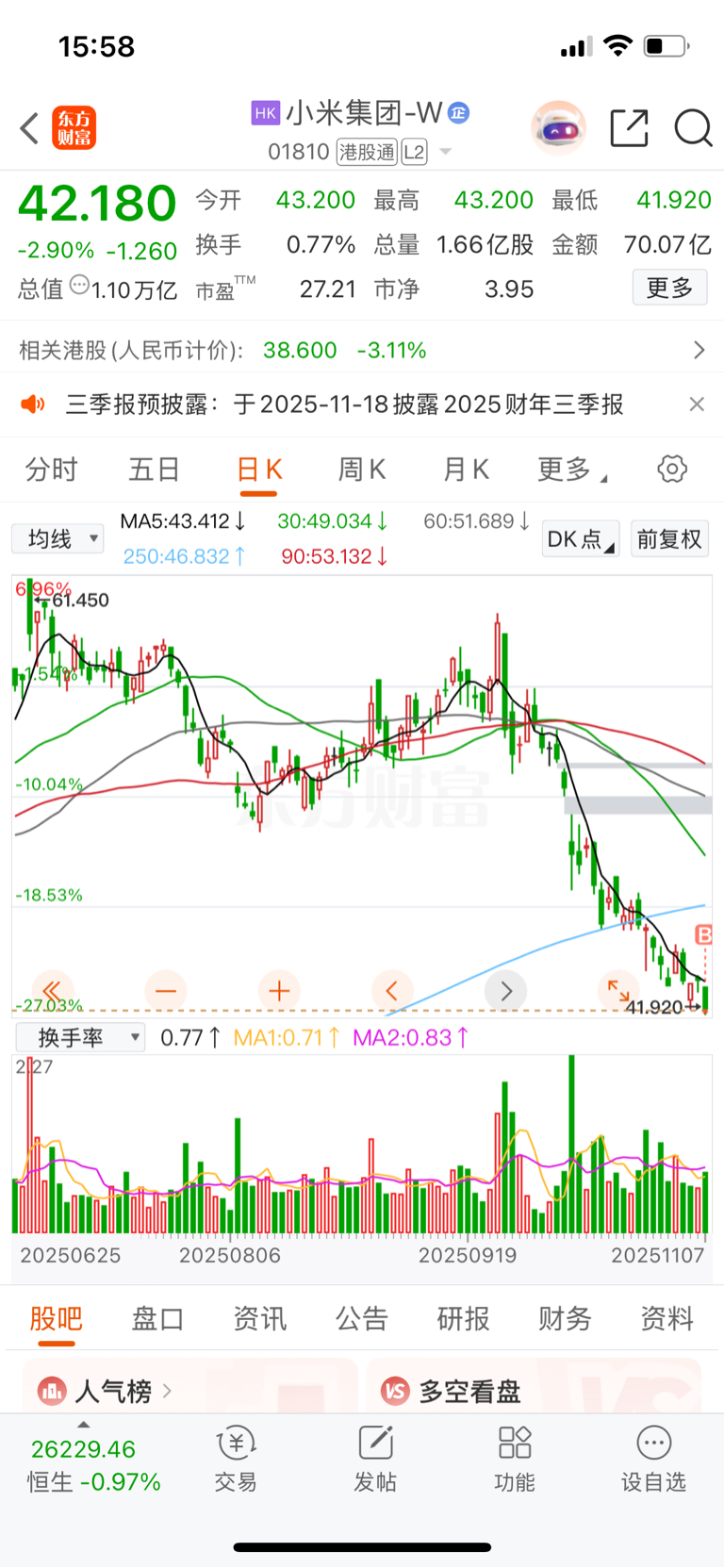$小米集团-W(HK|01810)$ 接个小盘,做做短线,希望不要被套