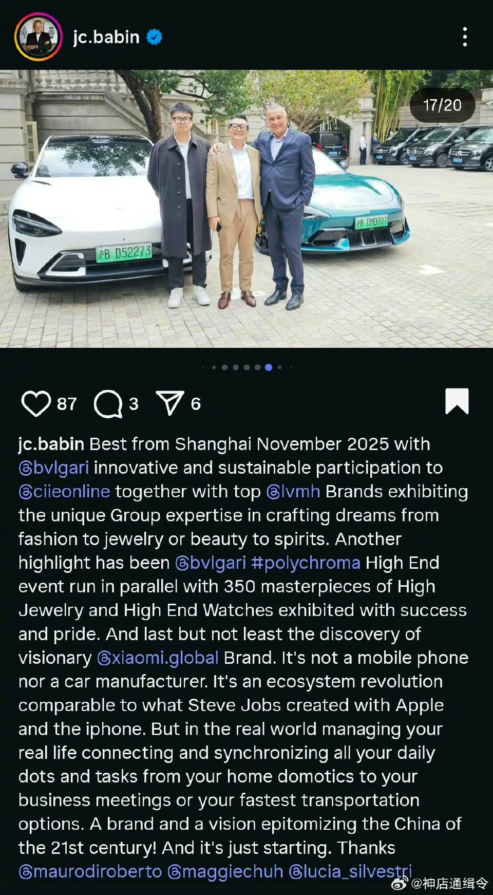 $小米集团-W(HK|01810)$ 奢侈品牌宝格丽CEO参观小米