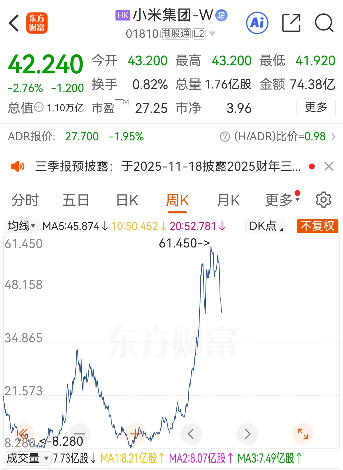 $小米集团-W(HK|01810)$ 才到哪里,以后每一次红盘都是逃跑的机会。
