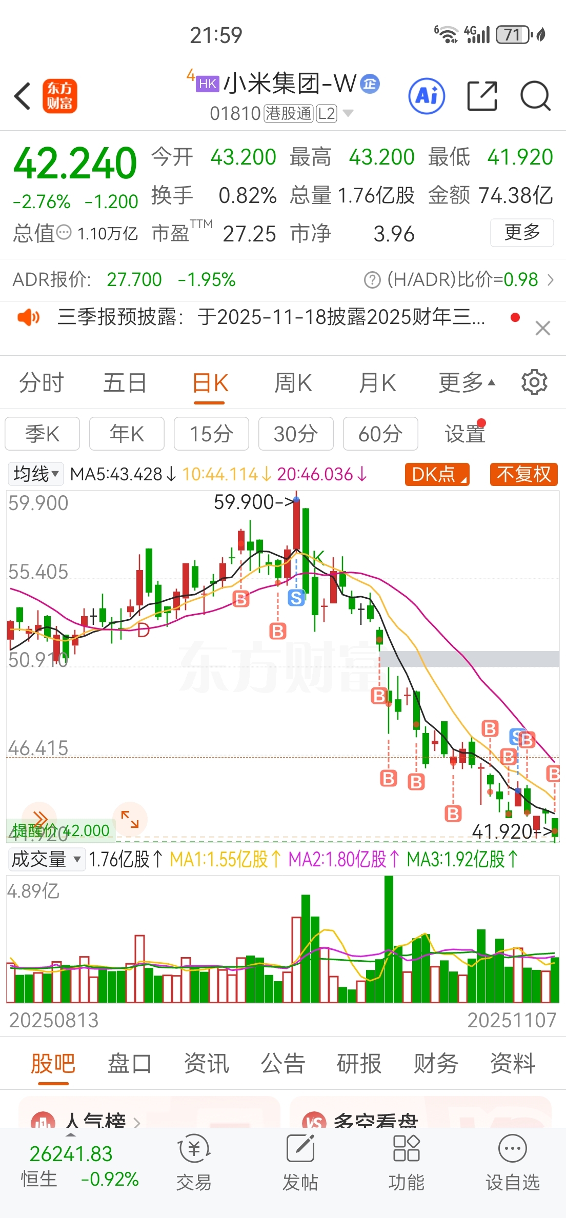 今日成交股票:操作原因:小米我会一直补到20块.50以内只买不卖