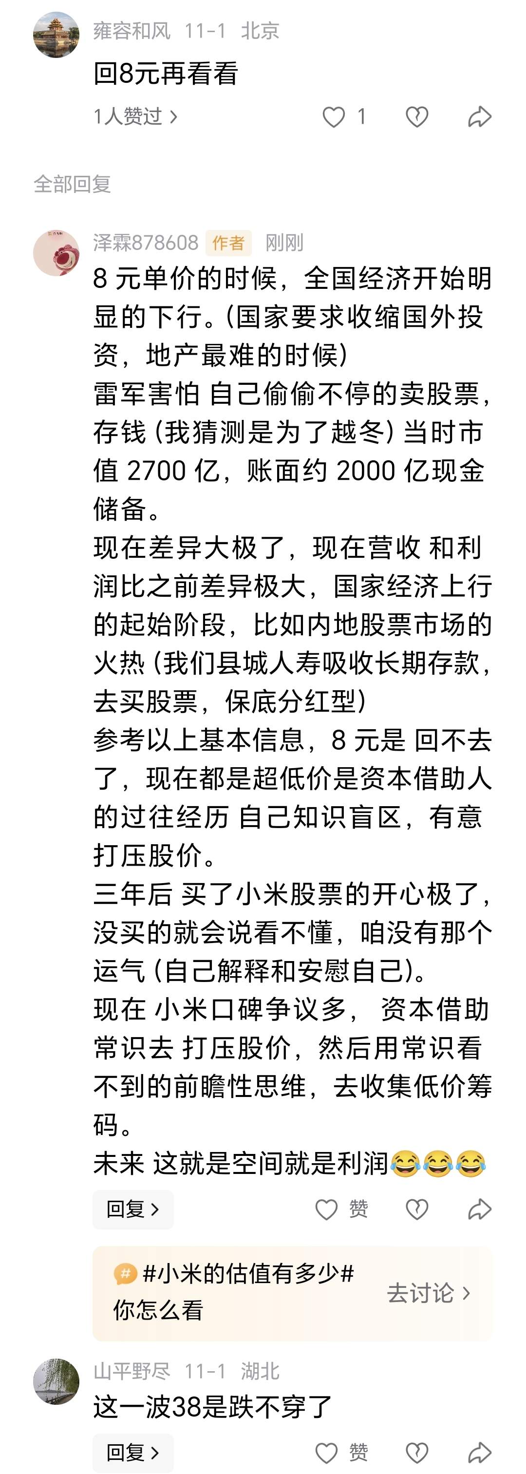 现在雷总对于经济上行,自己未来的判断(国家给了很多企业低息贷款)很有信心,对企业自身的发展很有信心,所以董事会同意了 25.6 亿股的股票回购方案。现在的状态,已非同日而语了。前瞻性思维和耐心是和优秀企业共同成长的重要因素。当然三年后 ,回报也很可观。也许一年半以后,差异比现在就大极了。也许雷总是历史上第一个万亿身价的首富