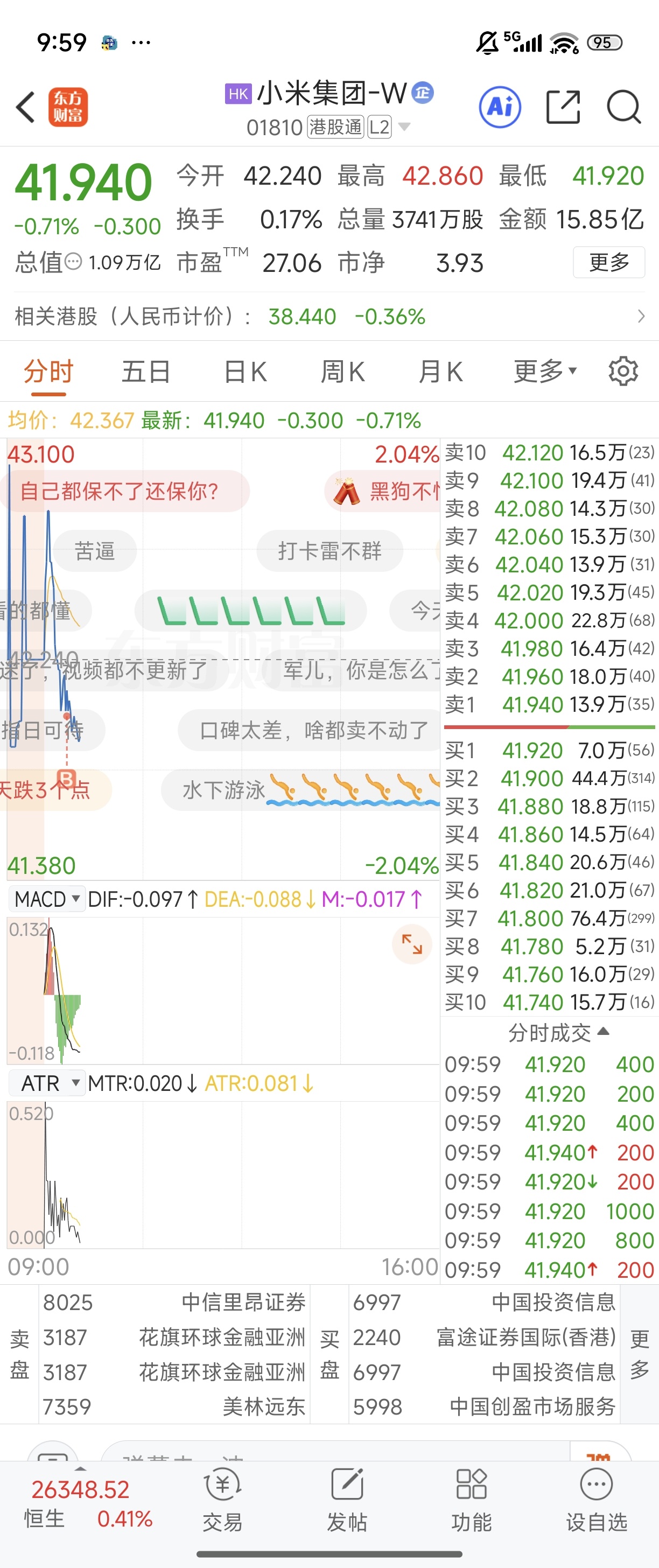 $小米集团-W(HK|01810)$ 空头稳稳控盘 砸完又低价买入子弹 砸出一个巨大黄金坑吧