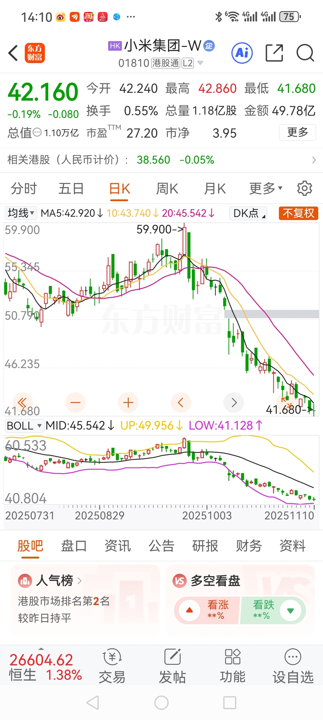 $小米集团-W(HK|01810)$ 下坡道有点陡,小心。