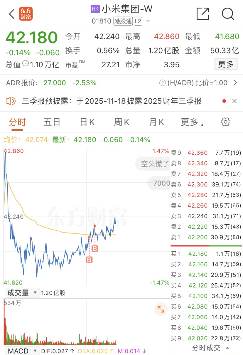 $小米集团-W(HK|01810)$ 上次打野亏一点出去的,这次希望能赚回来