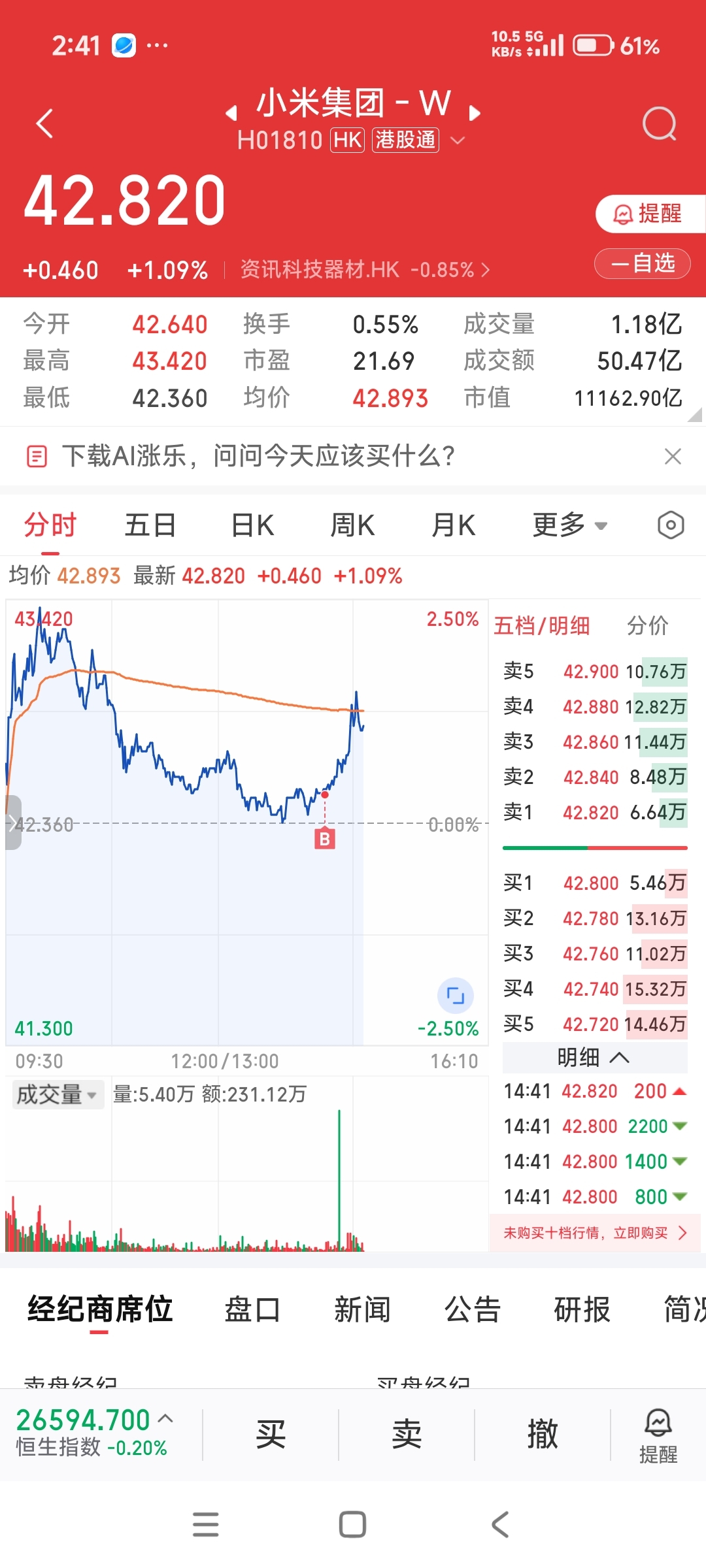 $小米集团-W(HK|01810)$ 继续加仓,越跌越买哈哈
