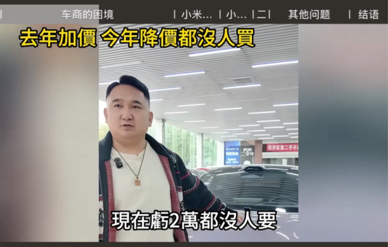 粗粮的新车和二手车已经进入死亡螺旋了。交付中心大量新车没人去提,二手车商大量高价